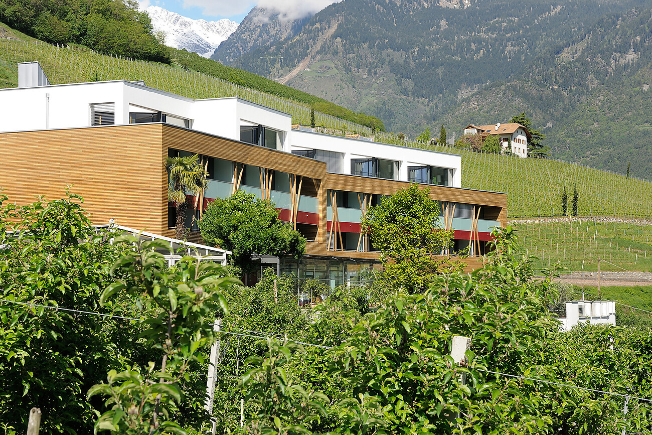 Das Bio Wellness Hotel mit Sonnenlage umgeben von Obstgärten bietet weiträumig faszinierenden Panoramablick nach Meran. 5-Gang Wahlmenu mit Terrassenservice verwöhnen Gaumen und Augen. Der modern - sonnige SPA Tempel mit Beauty, 4 Saunen mit Fensterblick, Massagen, Fitness, Fahrradverleih und gratis Internetstation bereichern das Verweilen. Lift, Garage, beheiztes Frei- und Hallenbad. Appartements mit Hotelservice. Und das alles in sehr familiär sympathischer Atmosphäre.