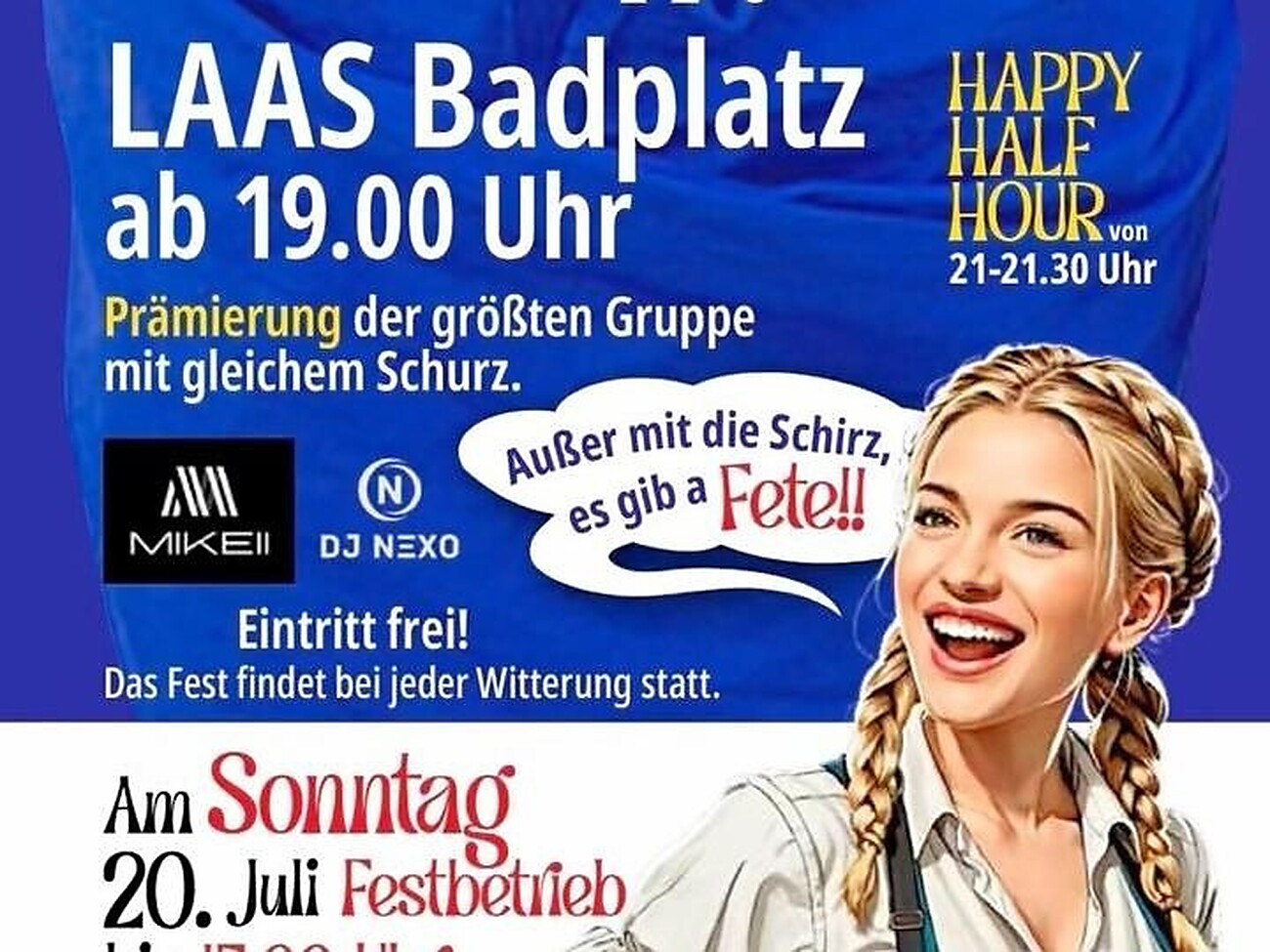 Prämierung der größten Gruppe mit gleichen Schurz. Happy Half Hour von 21-21.30 Uhr. Musikalische Unterhaltung mit JD Nexo.