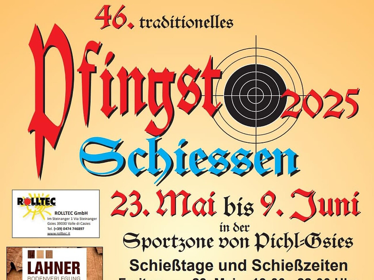 46° traditionelles Pfingstschießen in der Sportzone im Gsiesertal/Pichl mit tollen Preisen.