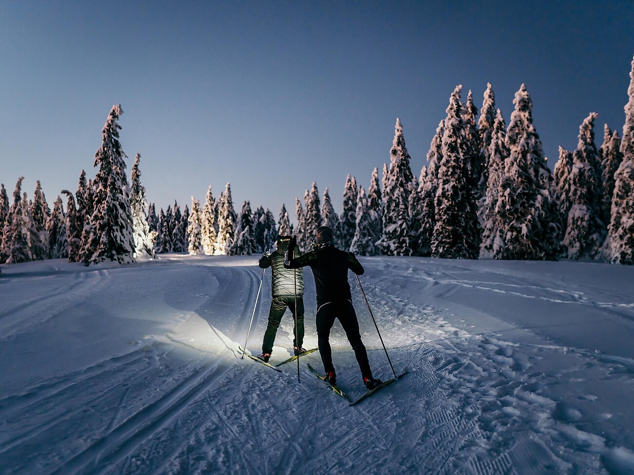 Erlebe den Zauber einer Winternacht bei Vollmond: Ein Rundkurs des Langlaufzentrums bleibt auch nach Einbruch der Dunkelheit geöffnet und wird stimmungsvoll mit Fackeln und Lichtern beleuchtet.