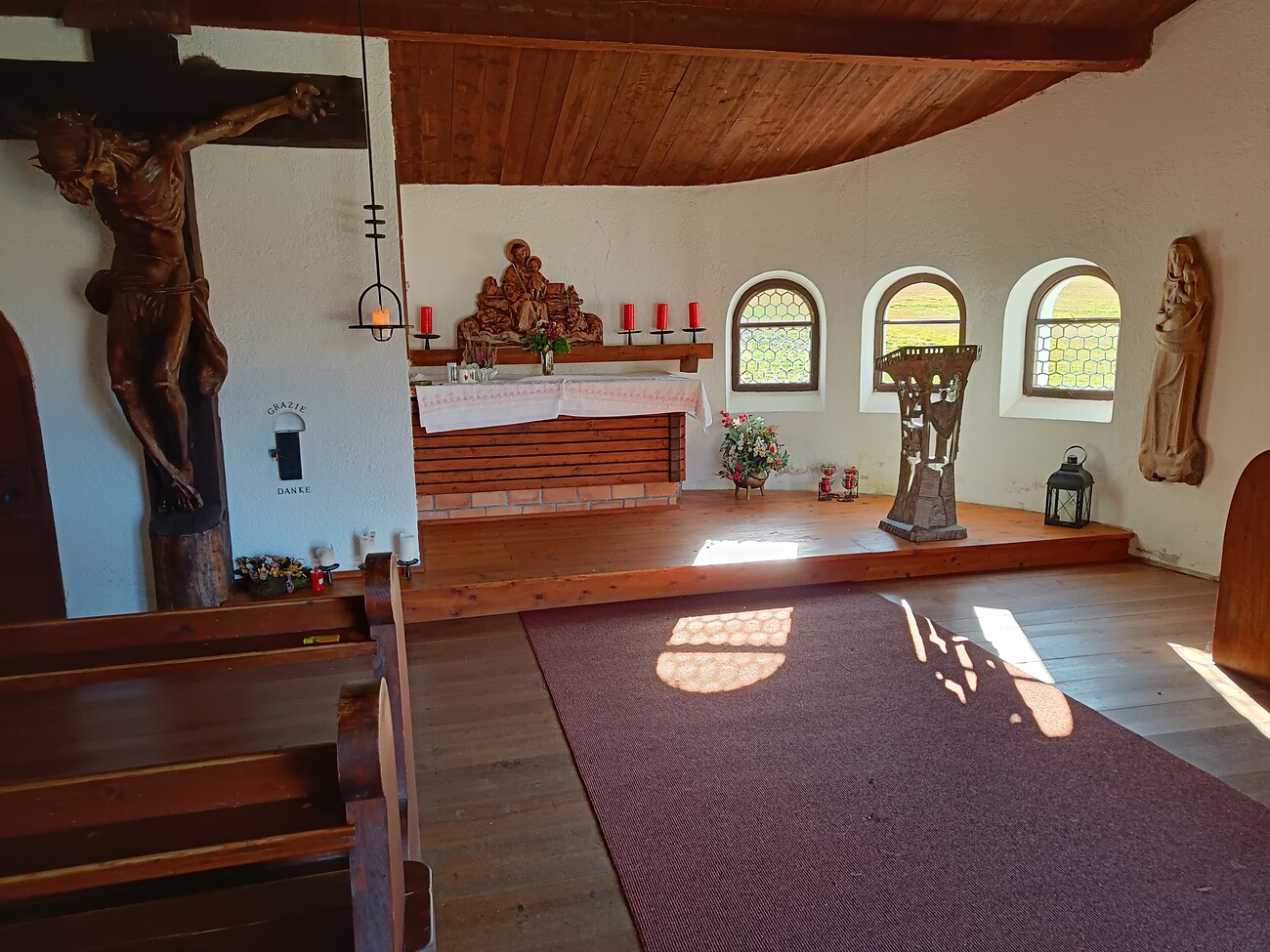 Auf die Besucher wartet ein gemütlicher Spaziergang zum Kirchlein wo in ruhiger Winterlandschaft adventliche Melodien des Cor Sasslong und eines Klarinettenquartetts erklingen.