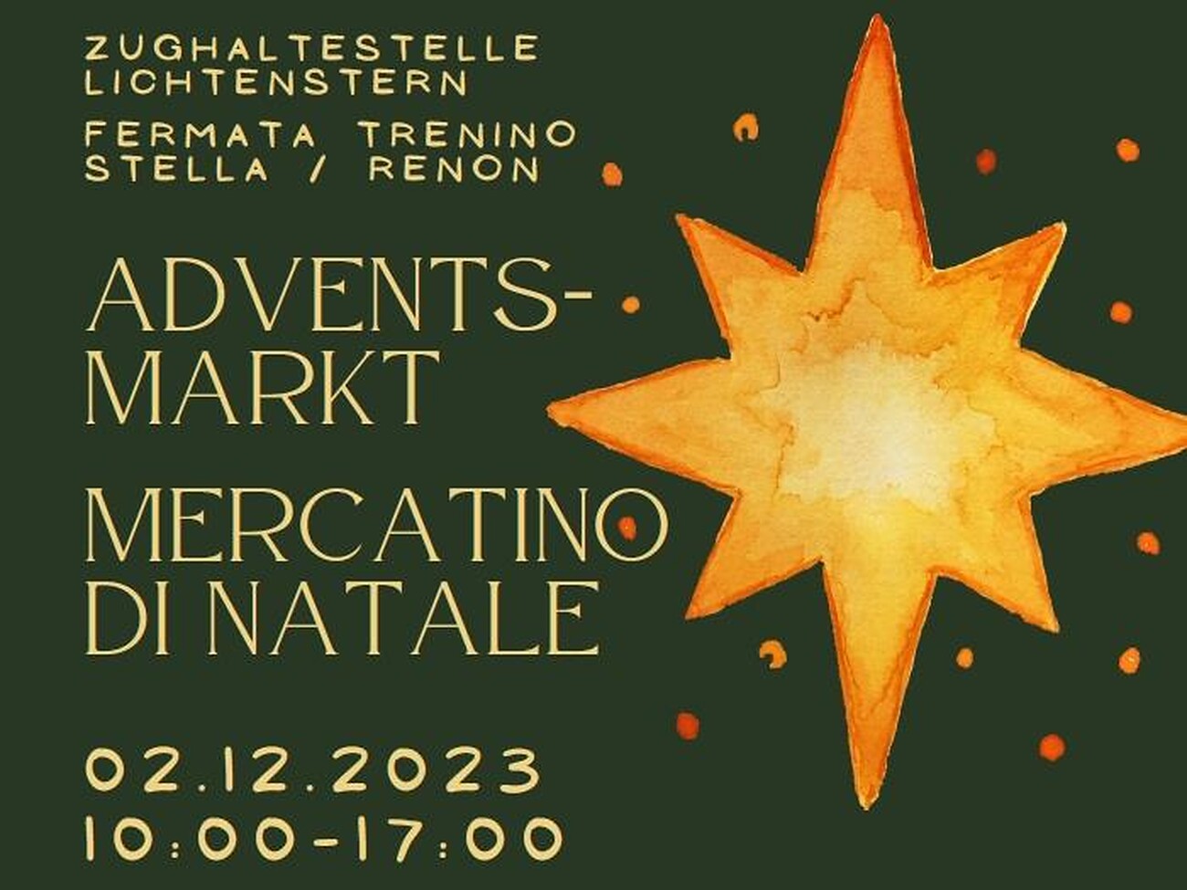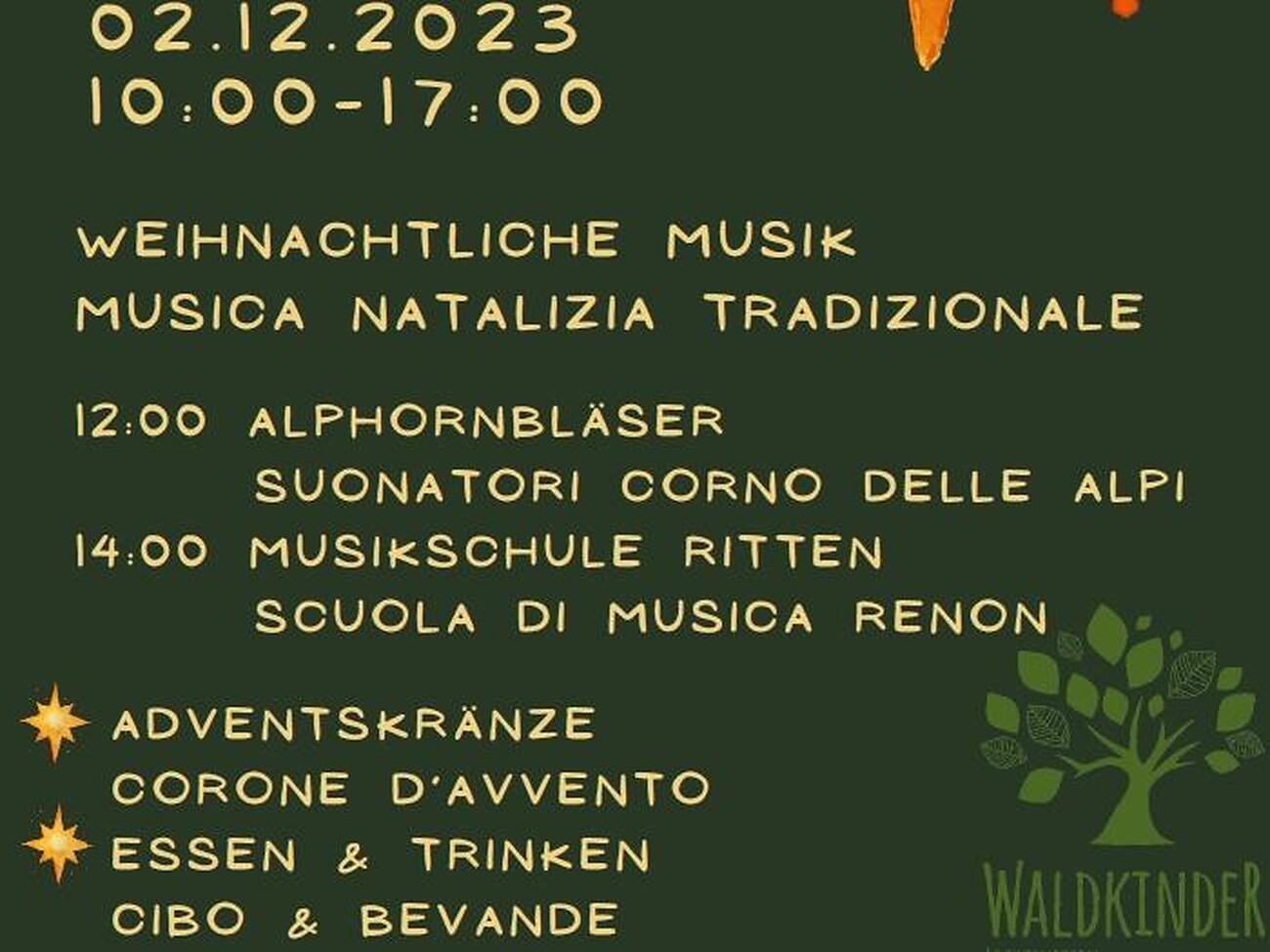 Weihnachtliche Musik: 12 Uhr Alphornbläser, 16 Uhr Konzert Musikschule Ritten. Adventskränze, Allerlei Weihnachtliches, Essen und Trinken.