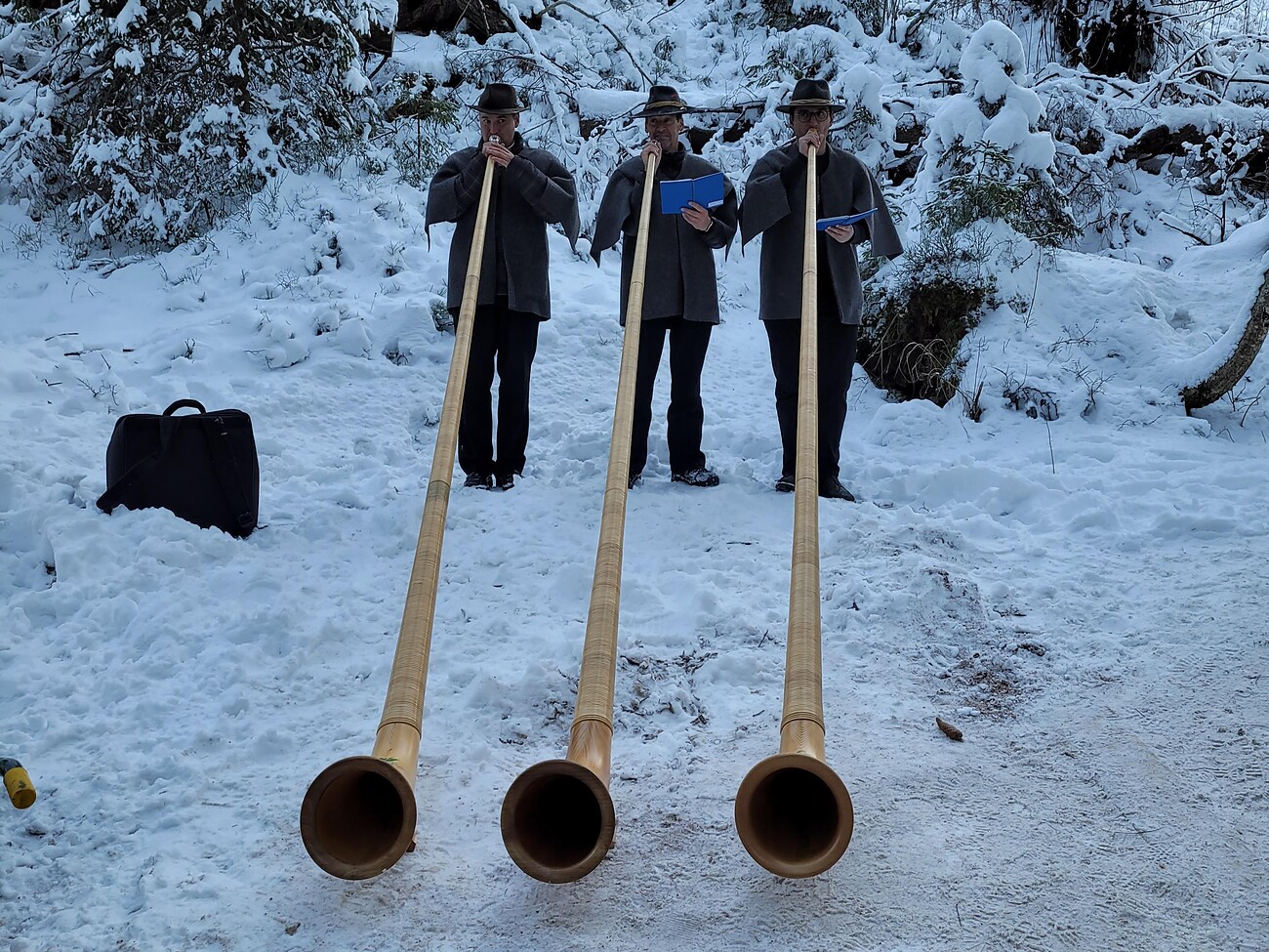 Tauche ein in die besinnliche Ruhe der Natur und erlebe eine winterliche Auszeit bei der Getreidemühle Karersee. Der Adventszauber wird vom Flügelhorntrio Eggental und den Alphornbläsern aus Deutschnofen musikalisch begleitet, deren Klänge eine einzigartige, festliche Atmosphäre schaffen und das Ambiente zu einem unvergesslichen Erlebnis machen. Für wärmende Getränke und köstliche Häppchen aus dem Brotbackofen sorgt die Schützenkompanie Welschnofen.