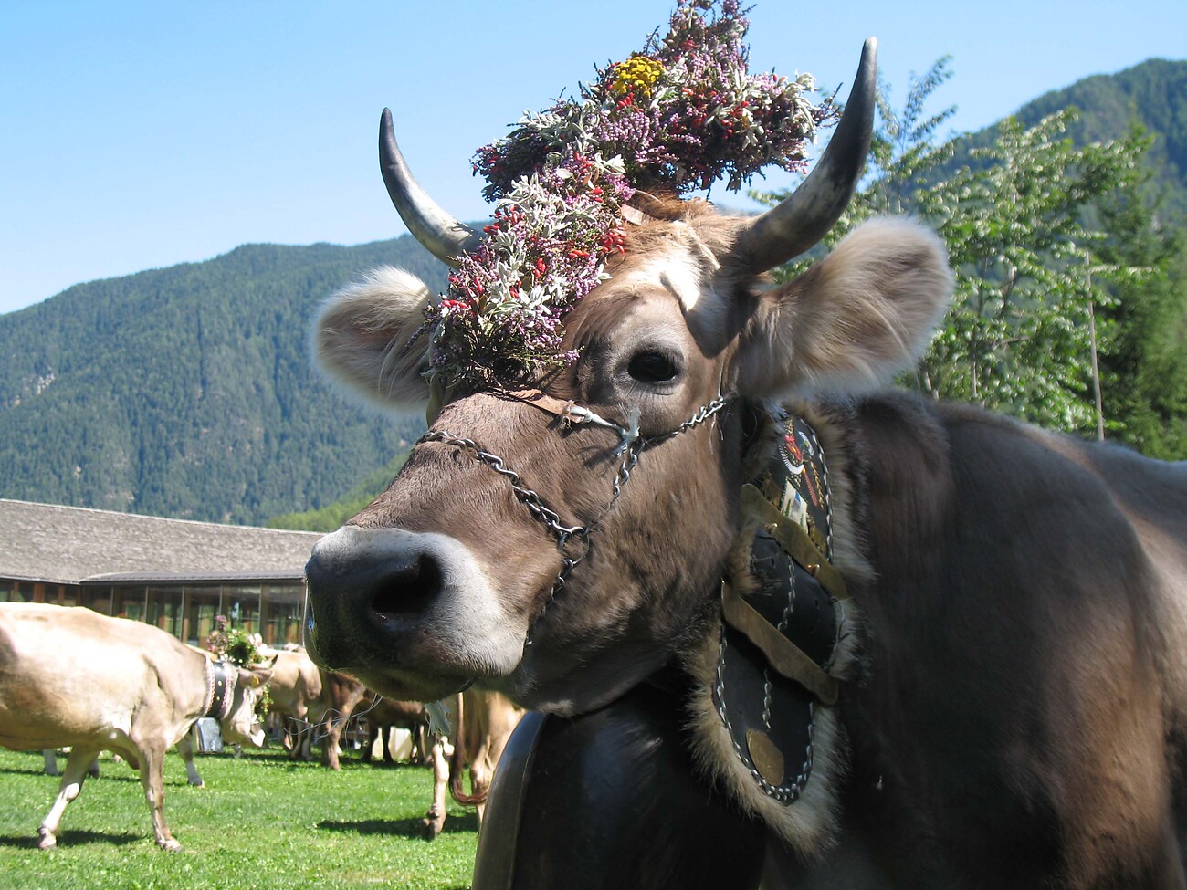 Beim Almabtrieb in Martelltal, kommt das Vieh welches die Sommermonate auf der Alm verbracht hat wiedr zurück in den heimischen Stall. Nach einem guten Sommer auf der Alm werden die Tiere feierlich geschmückt und ihrem Bauer übergeben!