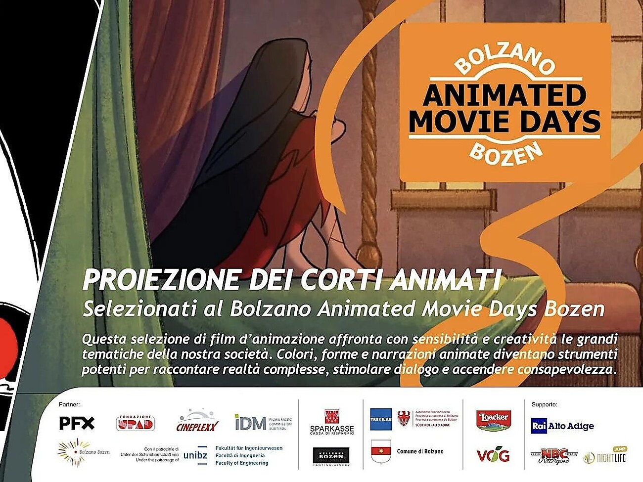 Die Sektion HUMAN STORIES des Bolzano Animated Movie Days Bozen 2026 präsentiert eine Auswahl von Animationsfilmen, die sich mit Sensibilität und Kreativität den großen Herausforderungen unserer Gesellschaft widmen. Von kultureller Vielfalt über Menschenrechte bis hin zu Umwelt und Zusammenleben lädt jede Geschichte dazu ein, die Welt mit neuen Augen zu betrachten. Farben, Formen und animierte Erzählungen werden zu wirkungsvollen Mitteln, um komplexe Realitäten darzustellen, Dialog anzuregen und Bewusstsein zu wecken.