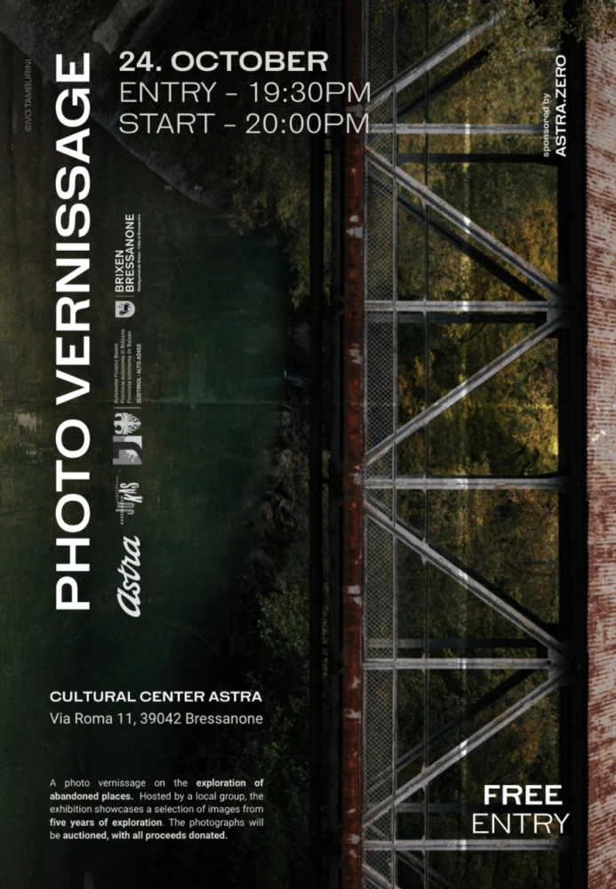 Veranstalter: Astra KulturzentrumSeit mittlerweile vier Jahren sind wir als Freundesgruppe (4 Personen zwischen 26-34 jahren) gemeinsam unterwegs, um sogenannte „Lost Places“ zu erkunden. Also verlassene Ortschaften, Gebäude und Industrieanlagen, die oft dem Verfall preisgegeben sind und dennoch einen besonderen Reiz ausstrahlen. Unsere Ausflüge führen uns jährlich an verschiedene Orte, die wir sowohl fotografisch als auch filmisch dokumentieren.