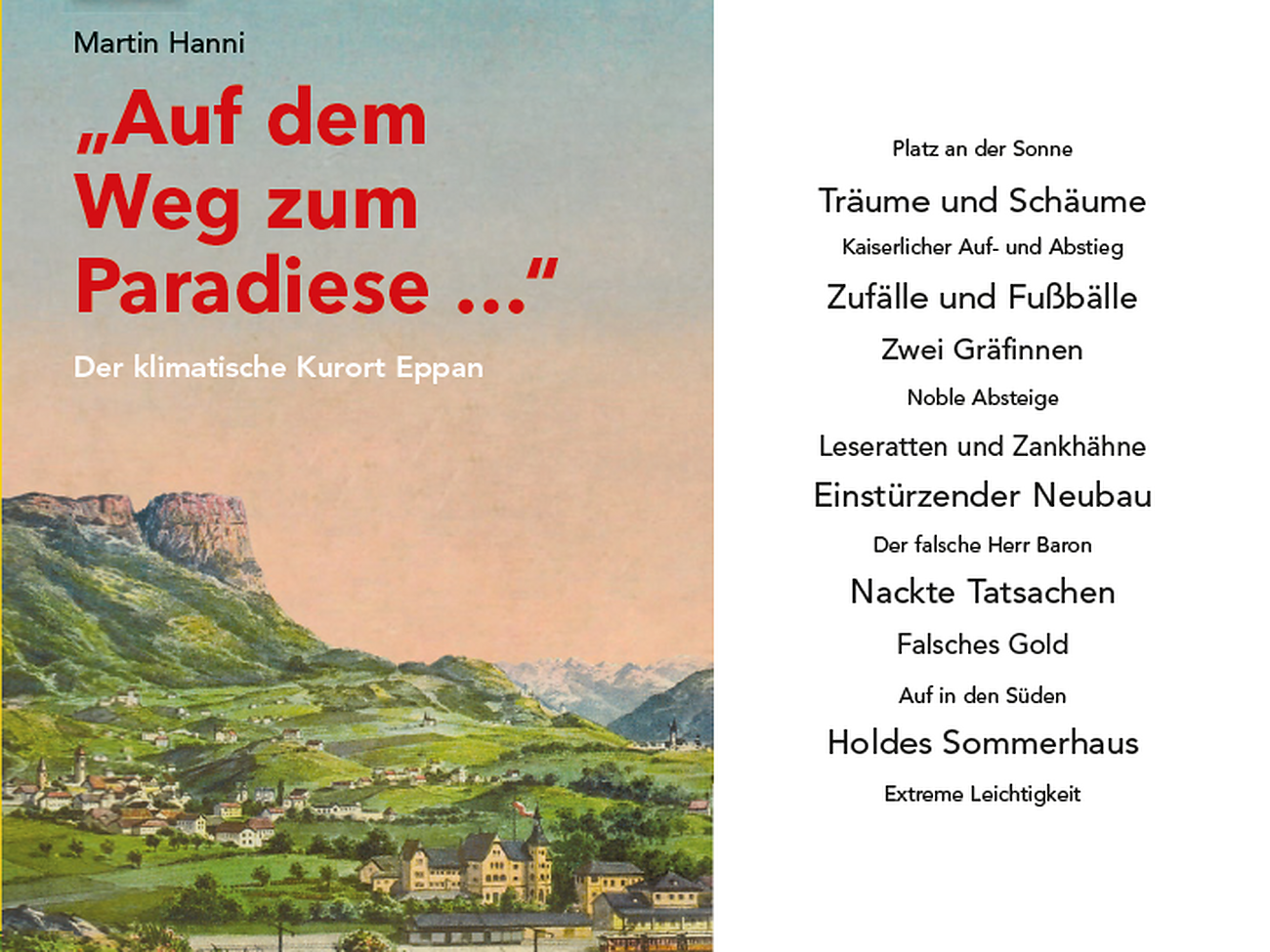 Geführter Spaziergang durch St. Michael und Umgebung mit Autor Martin Hanni. Martin wird die verschiedensten Anekdoten zu Gebäuden, Persönlichkeiten und Ereignissen erzählen und aus dem Nähkästchen plaudern. Eine Lesung aus seinem neu erschienenen Buch "Auf dem Weg zum Paradiese - Der klimatische Kurort Eppan" im Lanserhaus rundet einen interessanten Nachmittag ab.