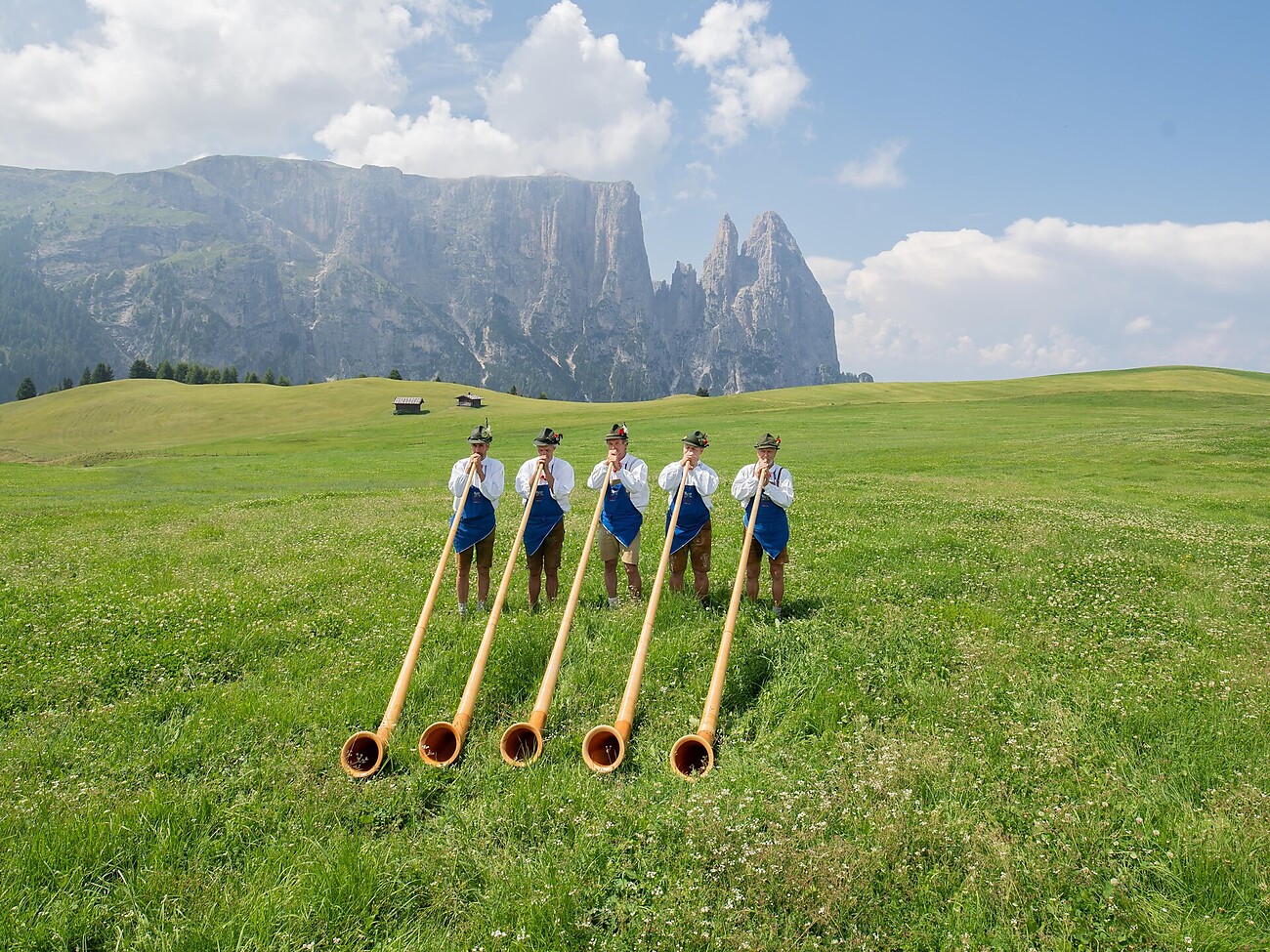 Auftritt der traditionellen Alphornbläser bei der Tschötsch Alm
