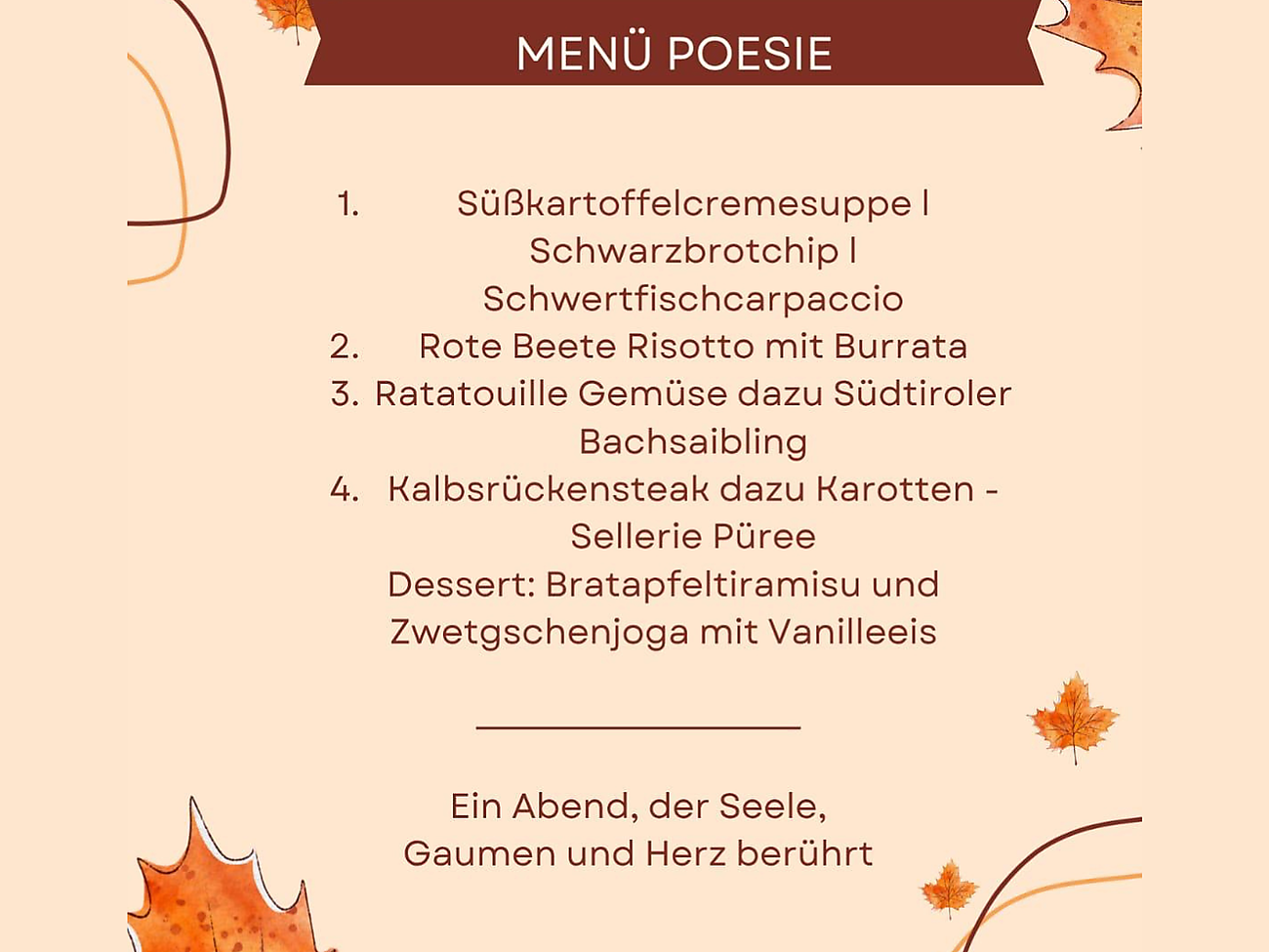 Genießen Sie ein 5-Gänge-Menü mit Geschichten und Gedichten, die begeistern.