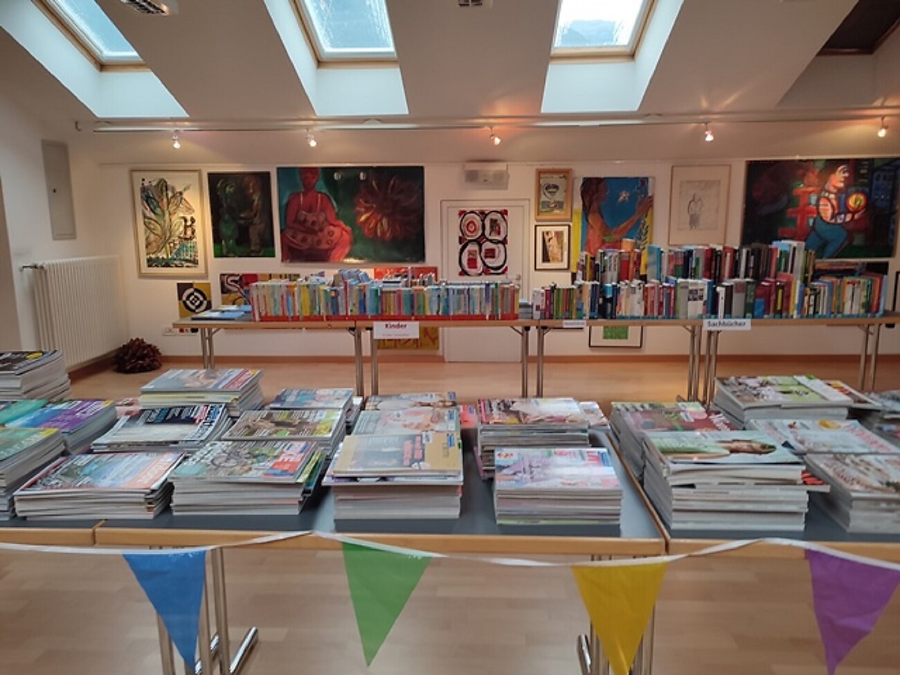 Der Bücher-Flohmarkt ist während der regulären Öffnungszeiten der Bibliothek geöffnet.