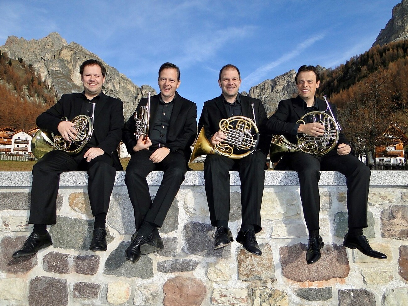 Es erwartet dich ein Konzert mit dem faszinierenden Hornensemble Cuartet de cors Ladinia und dem virtuosen Harmonikaspieler Ermes Costa.