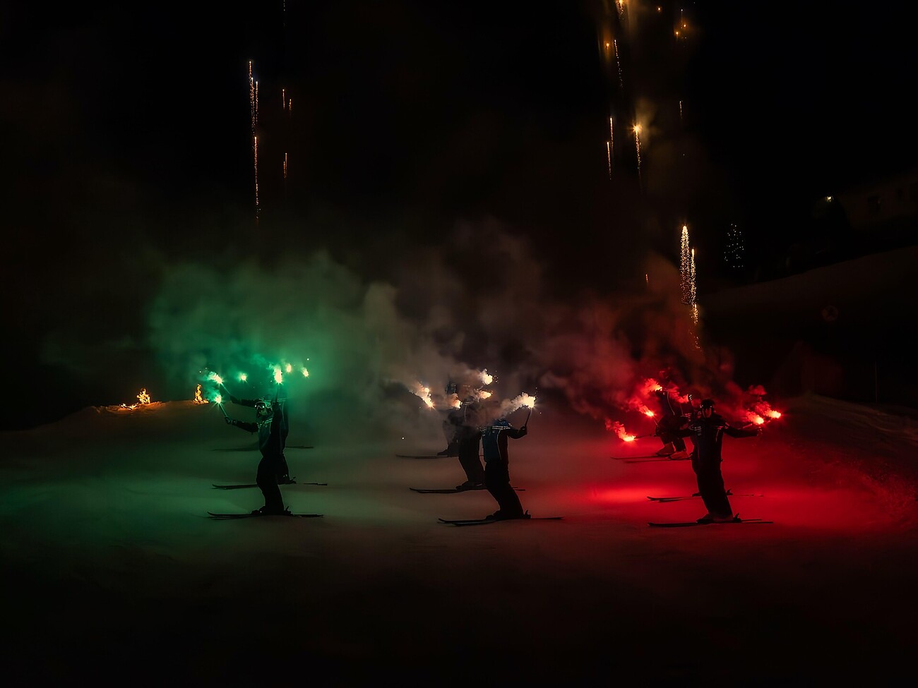 Dieser besondere Abend geht über die traditionelle Abfahrt der Skilehrer der Skischule Corvara hinaus. Begleitet werden sie von den Carabinieri, was für eine beeindruckende Kulisse sorgt. Ein Moderator führt durch den Abend, der mit Musik eines DJs stimmungsvoll untermalt wird, um die Energie hochzuhalten.