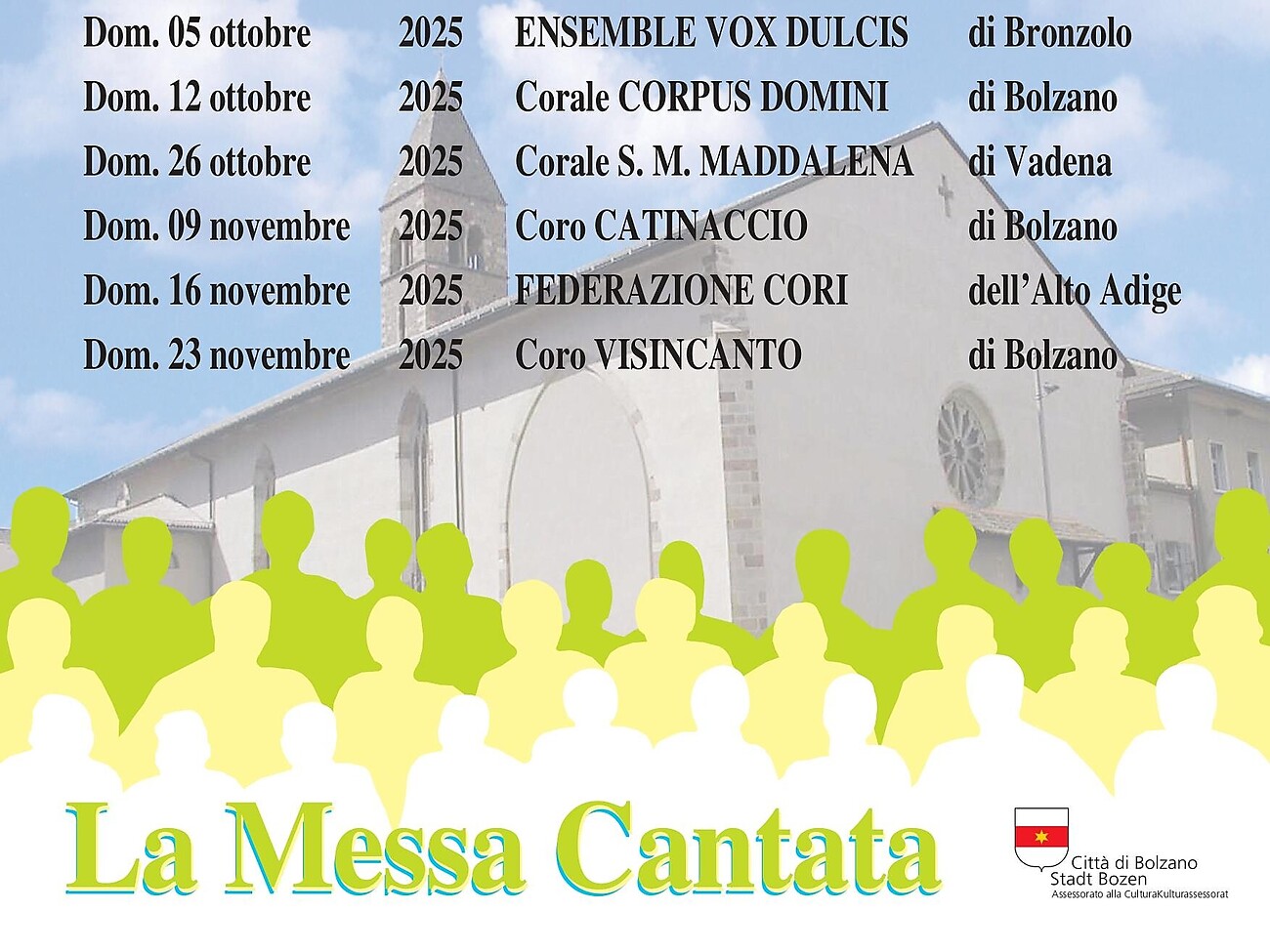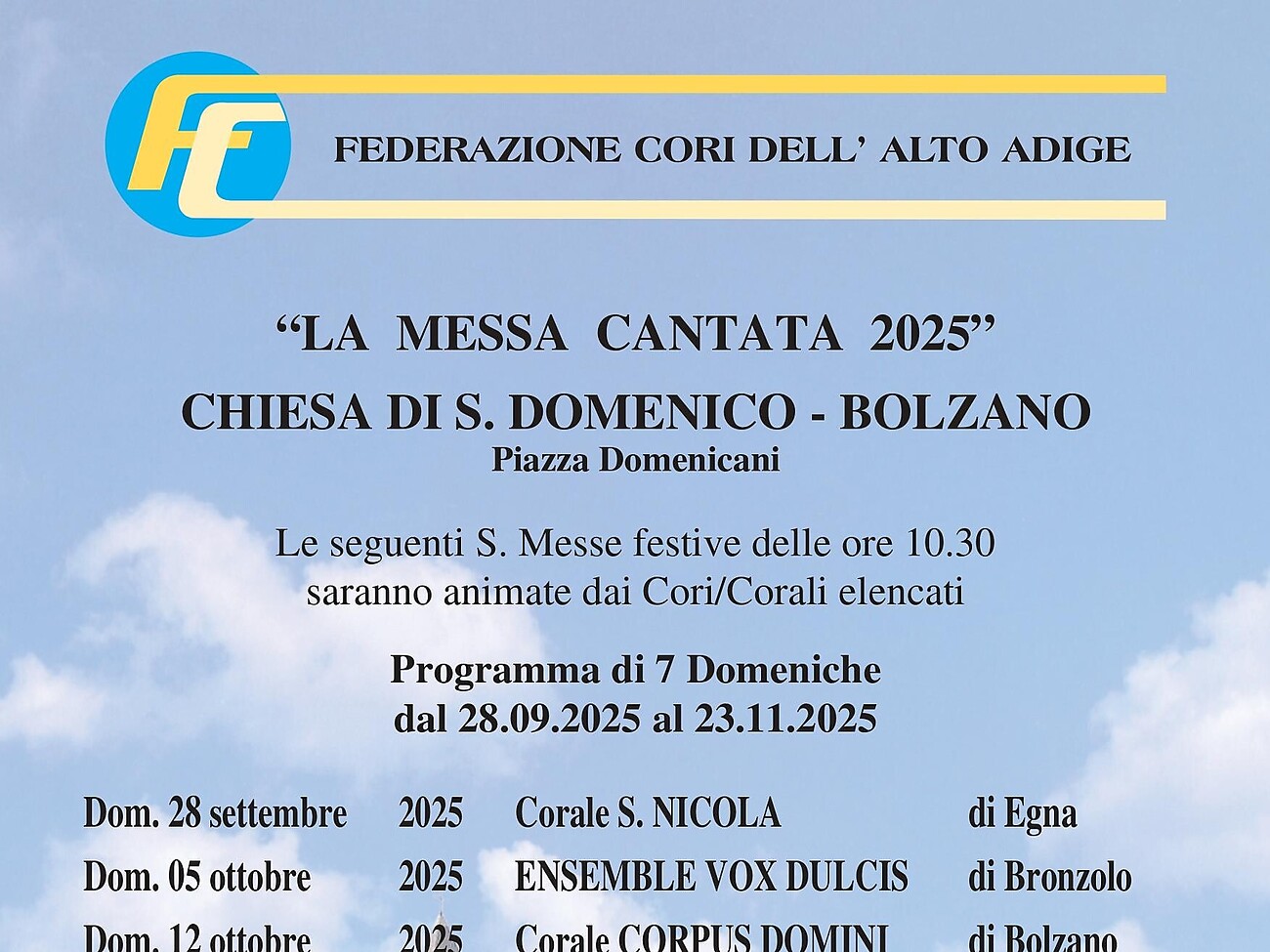 Das Kulturassessorat organisiert auch im Jahr 2025 die Reihe „Die gesungene Messe“, eine Folge von Sonntagsgottesdiensten, musikalisch gestaltet von Chören und Vokalensembles aus Südtirol.