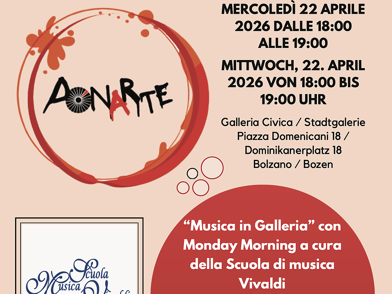 Musikveranstaltung von Monday Morning, organisiert von der Musikschule Vivaldi, in der Stadtgalerie, im Rahmen der Ausstellung „DonArte 2026".