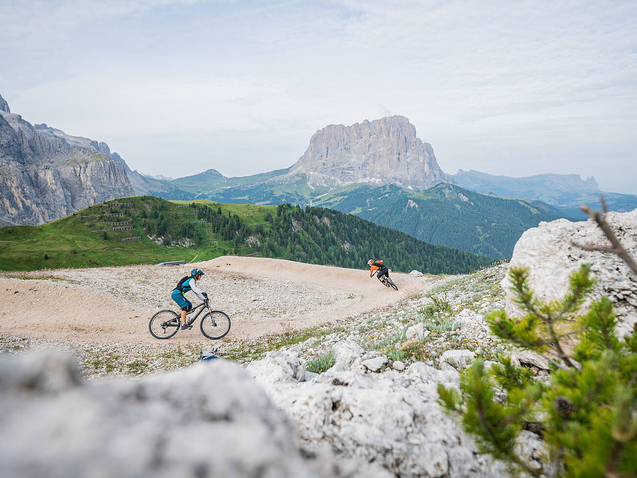 Mit modernen E-Bikes die Landschaft unterhalb des Langkofels entdecken: ein umweltfreundliches und unvergessliches Erlebnis mit Dolomitenblick! Gestartet wird am Active & Events Büro in Wolkenstein. Die erste Auffahrt führt zum Dantercëpies, mit beeindruckender Weitsicht auf Sella- und Langkofelgruppe. Im Anschluss geht es bergab bis zum Grödner Joch und Plan de Gralba. Nun wird wieder bergauf bis zum Sellajoch geradelt. Über die bekannte Comici-Hütte gelangt man daraufhin zum Hochplateau Monte Pana. Taleinwärts geht es nun in Richtung La Sëlva, bis man abschließend erneut den Wolkensteiner Ortskern erreicht.