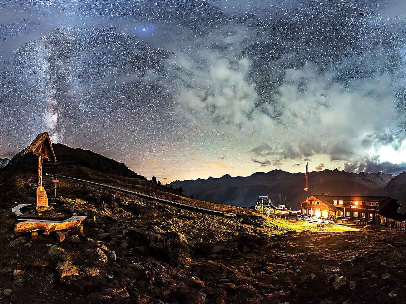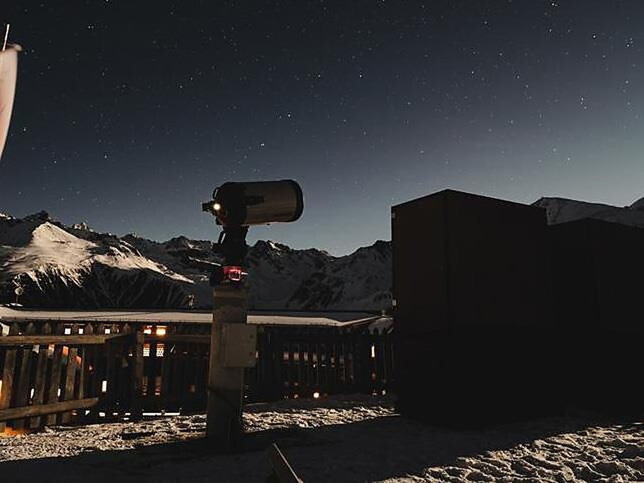 Einmal wöchentlich findet auf der verschneiten Berghütte Maseben eine winterliche Sternenführung statt.