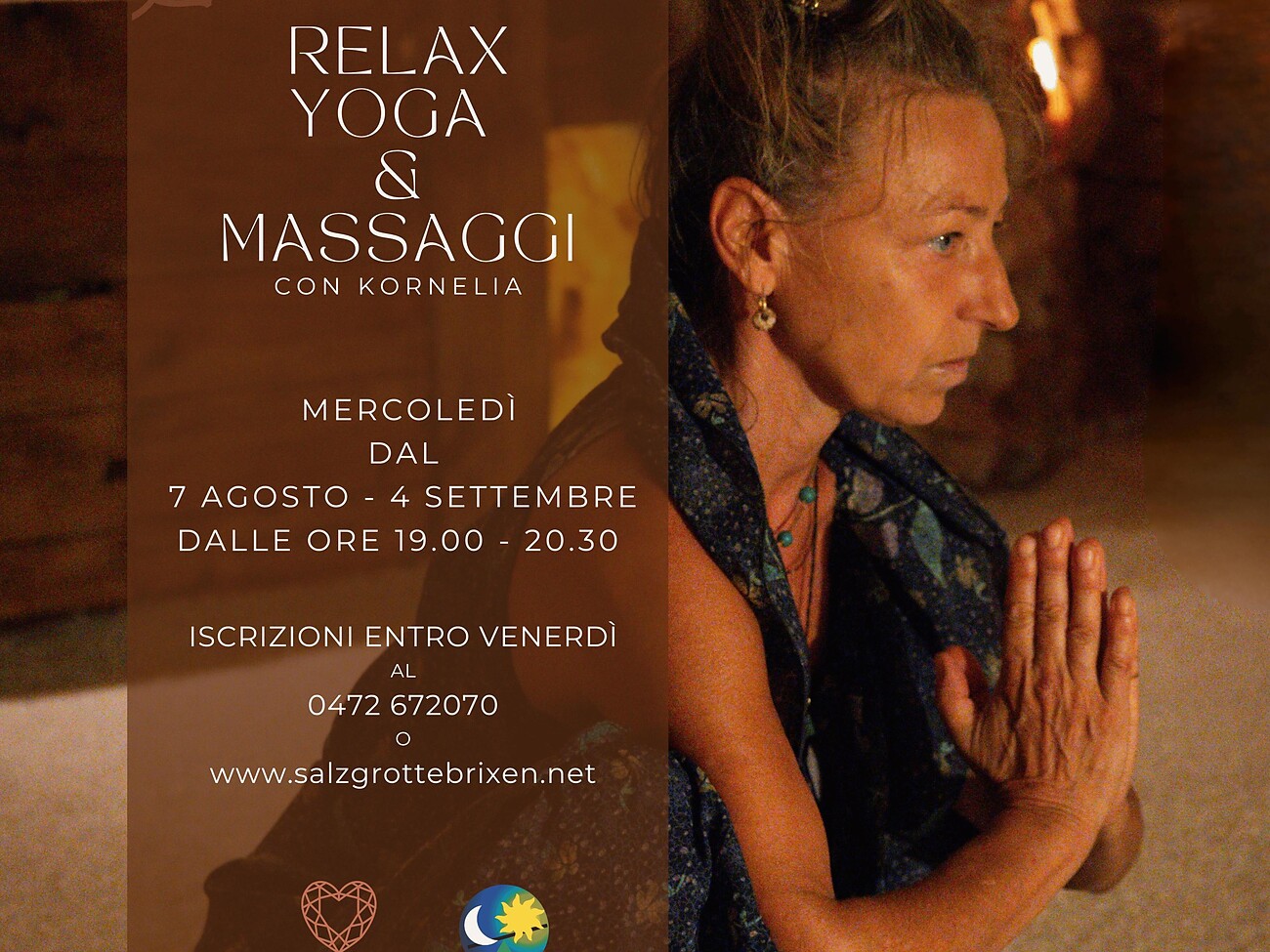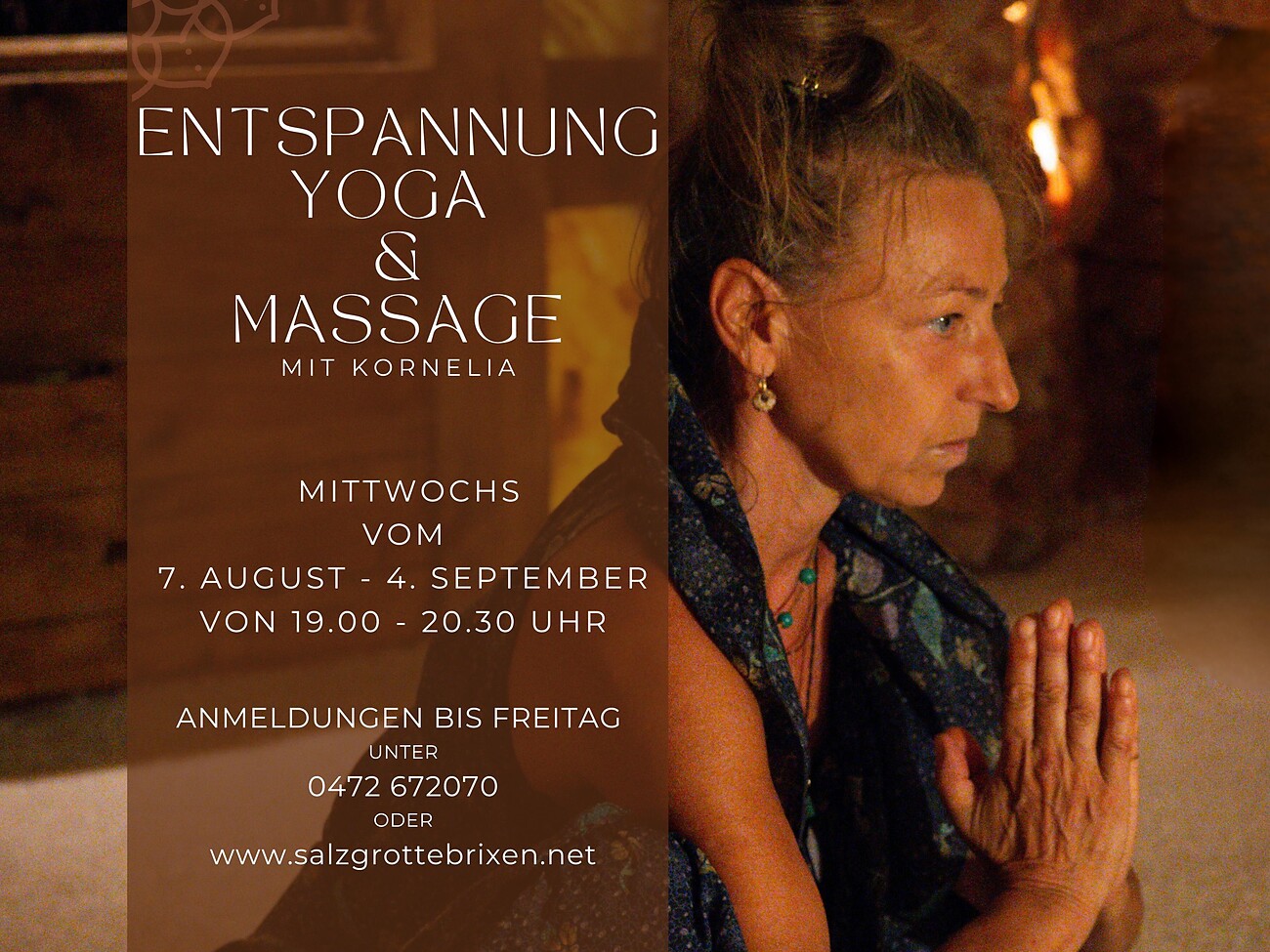 Jeden Mittwoch vom 7. August bis 4. September, von 19:00 bis 20:30 Uhr, ein einzigartiges Wellness-Erlebnis um €20- pro Person.
