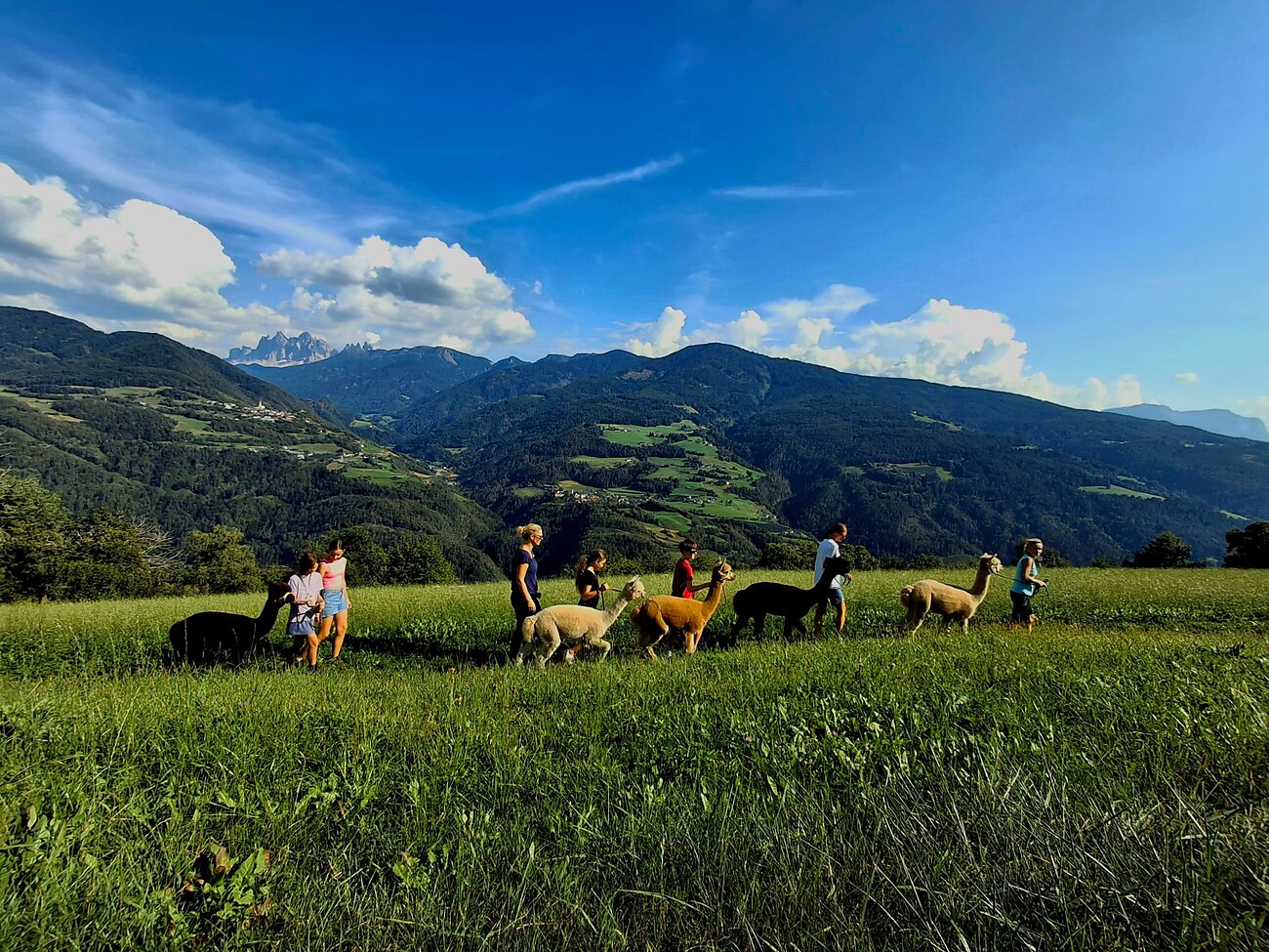 Bei dieser familienfreundlichen Tour lernt ihr nicht nur die liebenswerten Tiere hautnah kennen, sondern genießt auch gemeinsam die schöne Natur in den Wiesen und Wäldern oberhalb von Feldthurns.