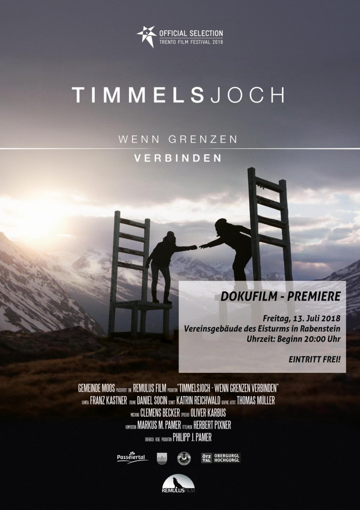 Am Freitag, 13. Juli 2018 um 20.00 Uhr, findet im Vereinsgebäude des Eisturms in Rabenstein die Premiere des Films "Timmelsjoch - Wenn Grenzen verbinden" von Regisseur Philipp J. Pamer statt.