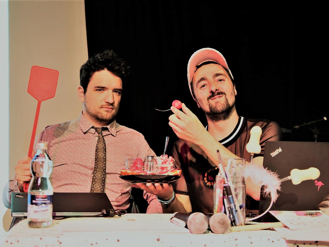 Interaktive Spielchen inklusive, bei denen niemand muss und jede*r darf. Spaß garantiert, Blamage ausgeschlossen. Zum Deppen machen sich nur die beiden Quizmaster!