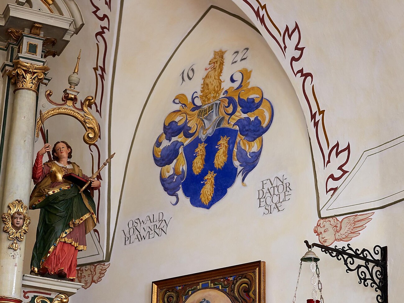 Die Kirche wurde 1630 von den Herren von Plawenn erbaut und hat nach außen über dem Eingang ein Fresko mit der Heimsuchung Mariens.