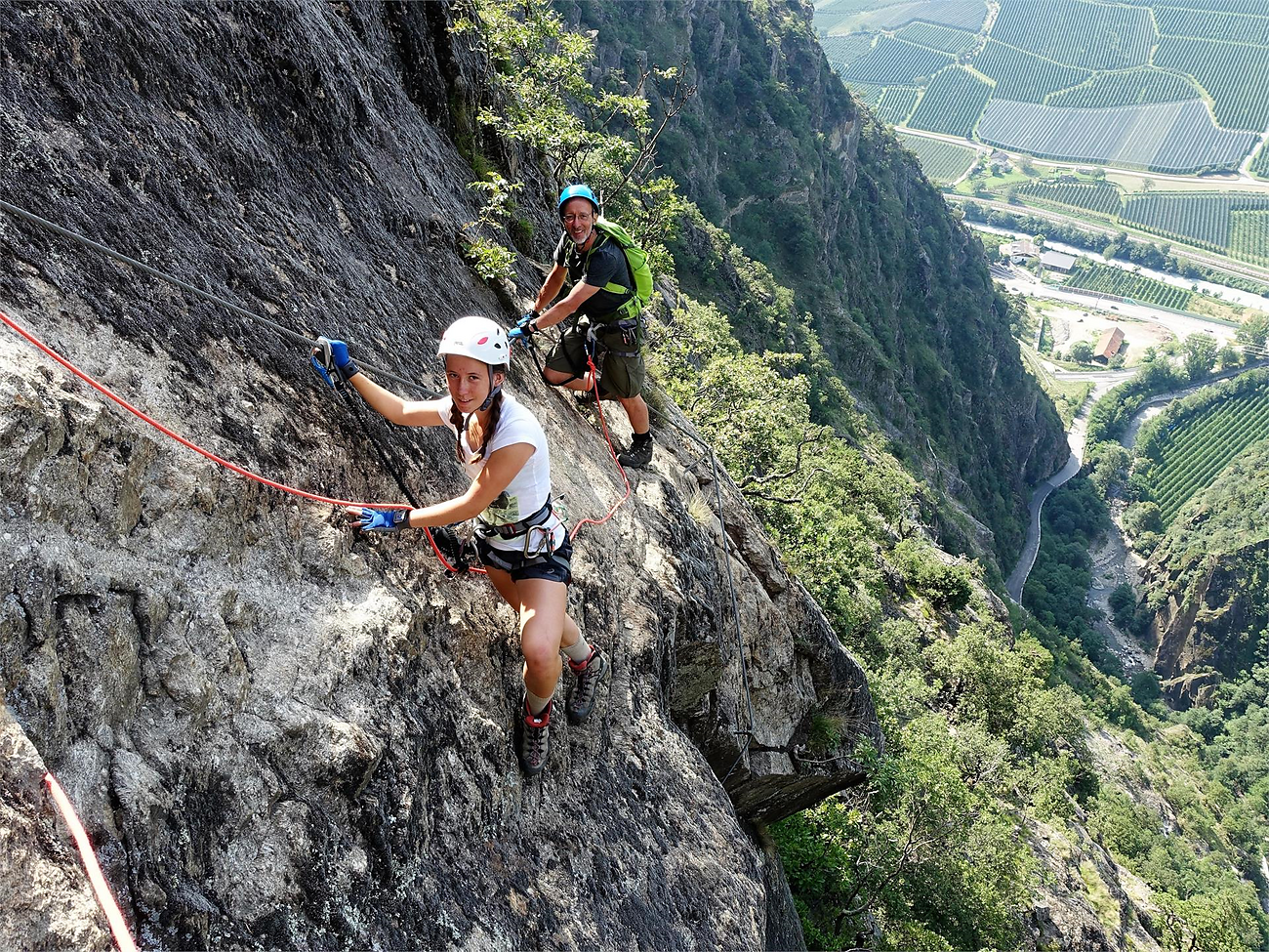 Unterwegs mit unserem erfahrenen Bergführer Michael Tschöll am neuen Ziel Klettersteig oberhalb der Schutzhütte Nasereit in Partschins oder am anspruchsvollen Klettersteig "Hoachwool" am Naturnser Sonnenberg!