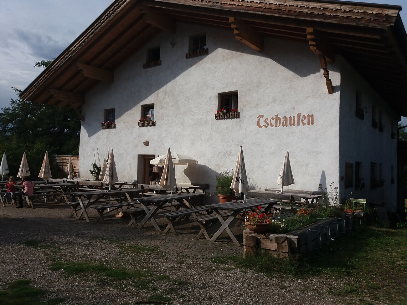 Einkehrmöglichkeit beim Gschnofer Stall, trotzdem genügend Getränk mitnehmen.