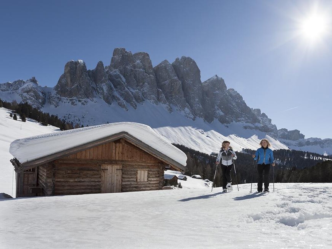 Start der Schneeschuhwanderung am Treffpunkt in Zans (UNESCO Info Point) um 09.30 Uhr. Anreise mit der öffentlichen Buslinie 330 wird empfohlen (siehe Fahrpläne: www.suedtirolmobil.info)