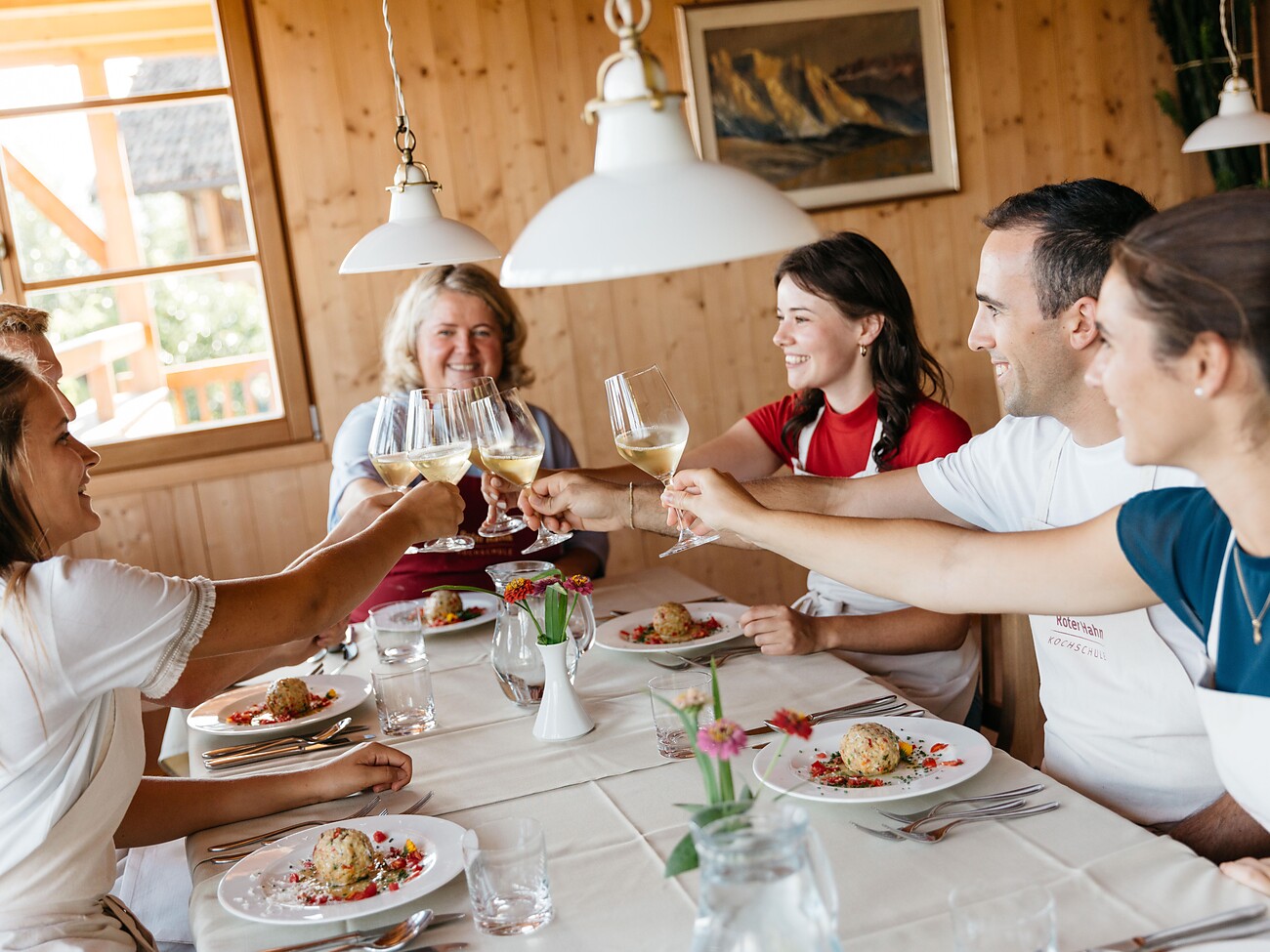 Kreiere dein Menü mit Zutaten von Südtirols Bauernhöfen. Angeleitet von einem Südtiroler Koch kochst Du nicht nur gemeinsam, sondern genießt auch gemeinsam im familiären Ambiente an der „tavolata“. Das selbst zubereitete Menü mit passender Weinbegleitung wird damit zu Deinem persönlichen Erlebnis in der Kochschule am Bauernhof.