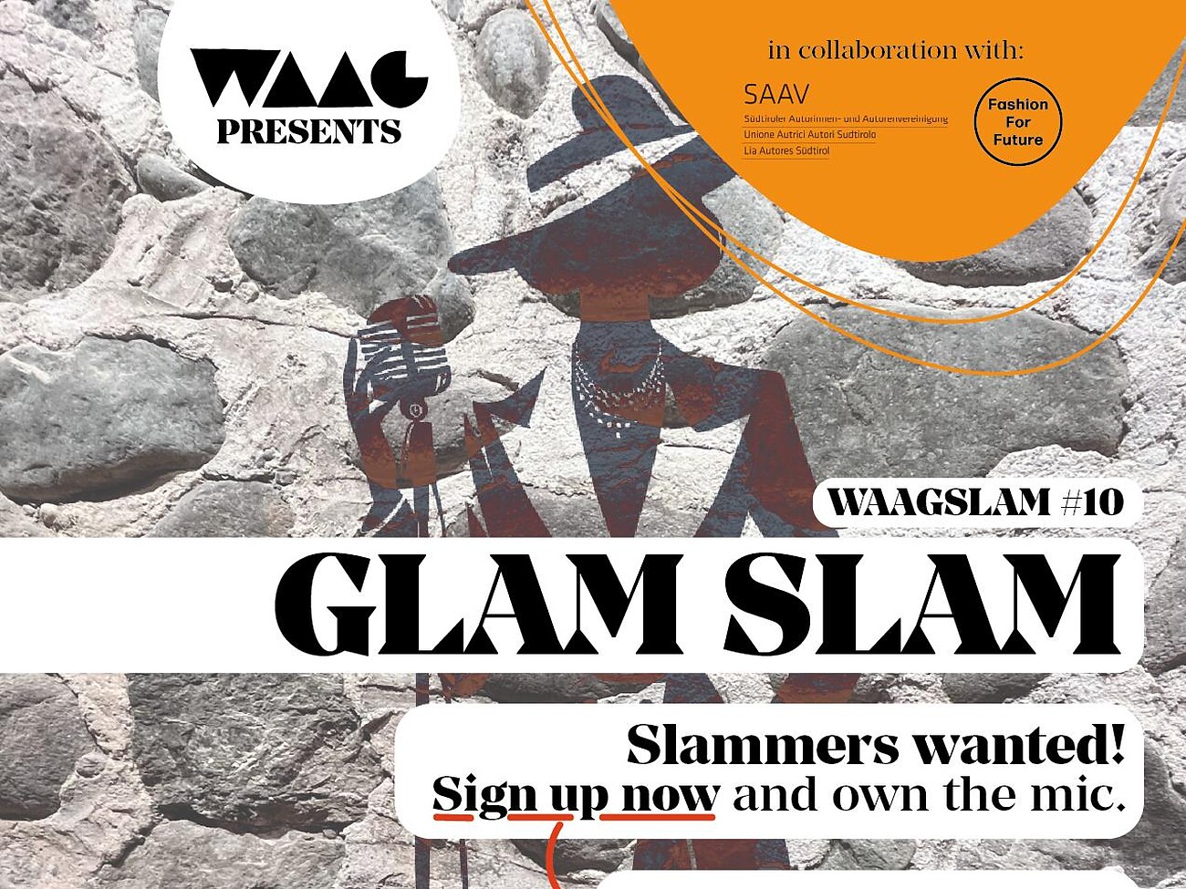 Die zehnte Ausgabe des Poetry Slams im Waag wird ein ganz neues Erlebnis bieten: Es ist nicht nur ein Poetry Slam, sondern ein GLAM Slam! Unsere lokalen Slammer werden ihre Texte in atemberaubenden Outfits präsentieren – freundlicherweise zur Verfügung gestellt von VBB – im Rahmen der aktuellen Fashion for Future-Edition.