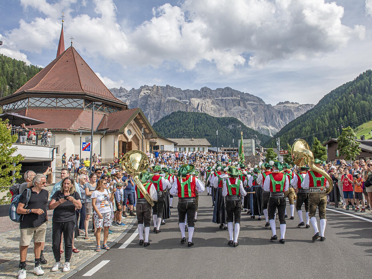 Am ersten Wochenende im August findet der traditionelle Grödner Trachtenumzug statt. Daran nehmen die fünf Musikkapellen Grödens, der Trachtenverein sowie verschiedene Volkstanzgruppen teil. Nach dem Umzug durch das Ortszentrum von Wolkenstein findet auf dem Gemeindeplatz das große Konzert der Musikkapelle statt. Für das leibliche Wohl sorgt die Vereinsgemeinschaft von Wolkenstein.