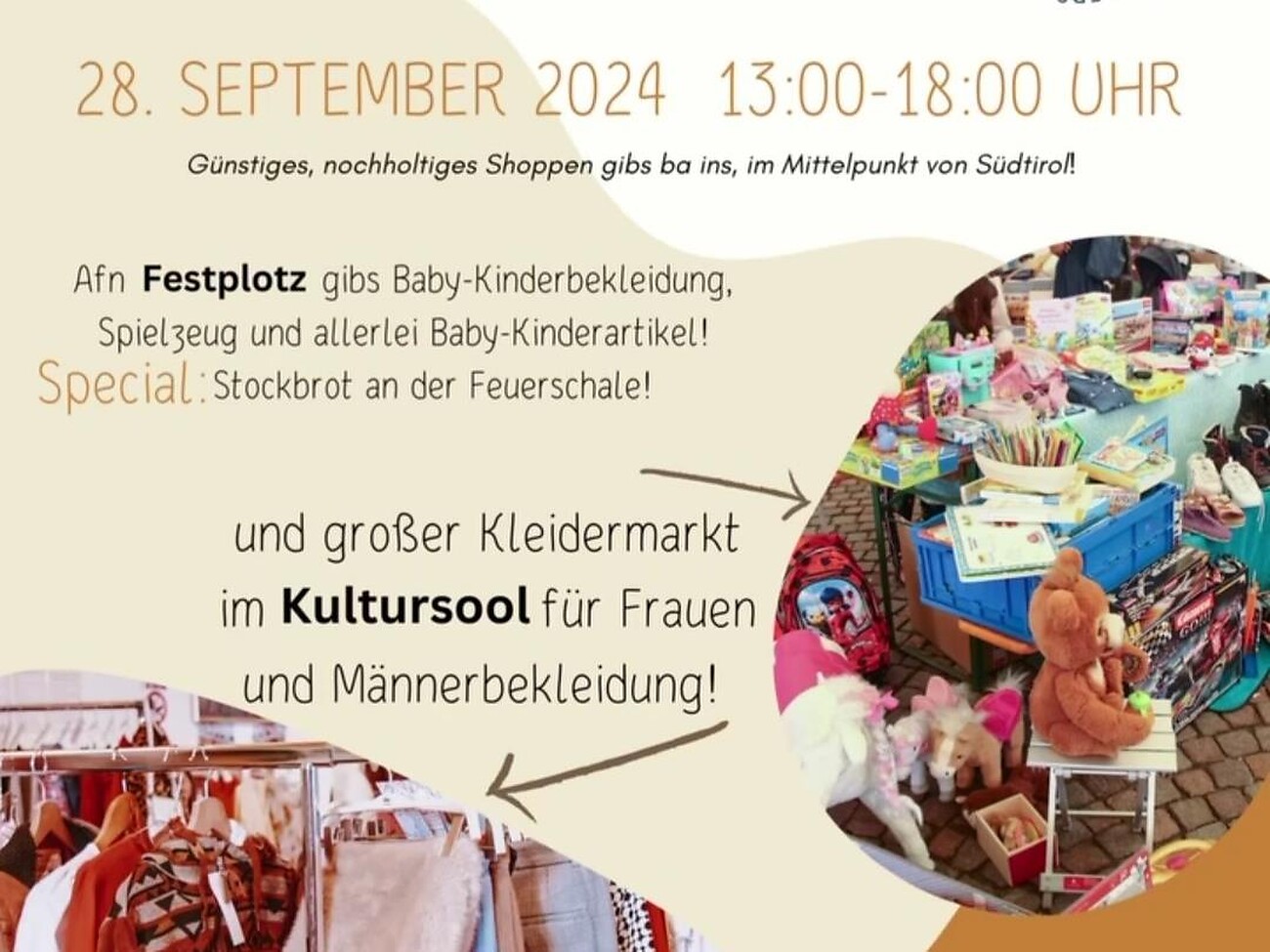 Und großer Kleidermarkt im Kultursaal für Frauen und Männerbekleidung!