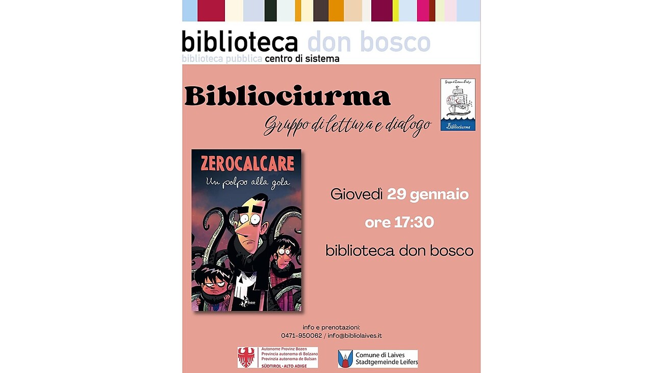 Nel prossimo appuntamento del gruppo di lettura e dialogo “Bibliociurma”, giovedì 29 gennaio ore 17:30 in biblioteca don bosco: Un polpo alla gola di Zerocalcare.