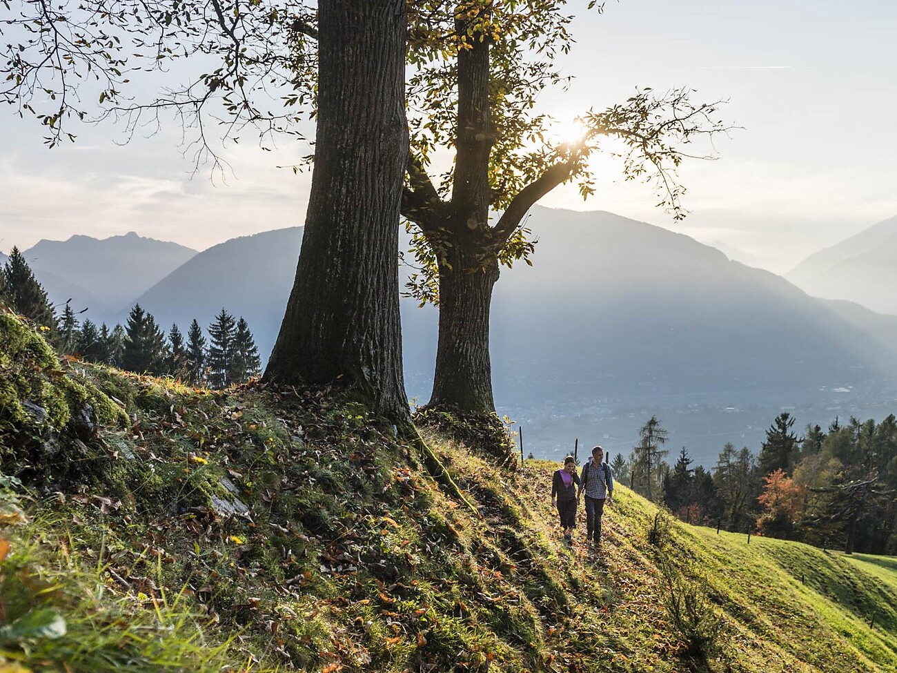 Vom schönen Dorf Tschars und durch Obstwiesen geht es hinauf zum Waalweg und auf diesem ohne viel Mühe zum Schloss Juval. Auf dem Stabener Waal wandern wir dann zurück.