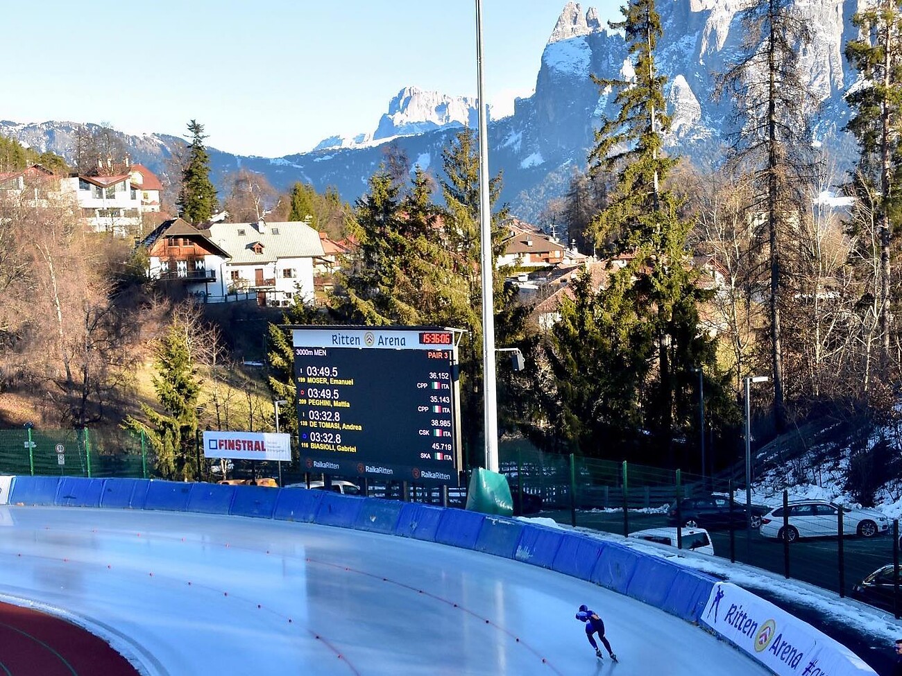Der Eisring der Ritten Arena ist die schnellste Freiluftbahn der Welt. Hier trifft sich die Eisschnelllauf Elite zum Wettkampf