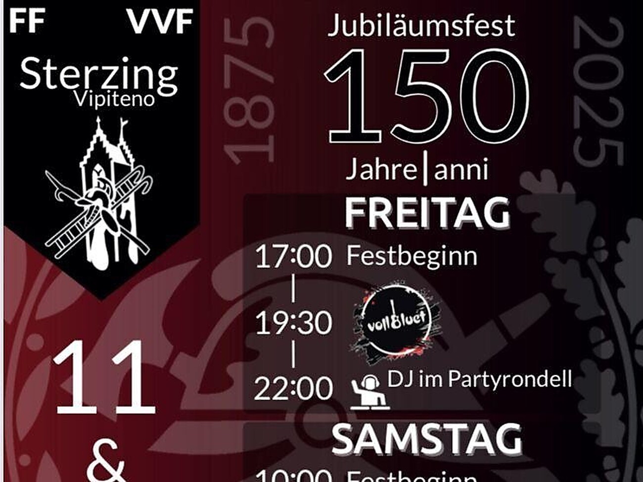 Jubiläumsfest 150 Jahre FF Sterzing 11. & 12. Juli 2025