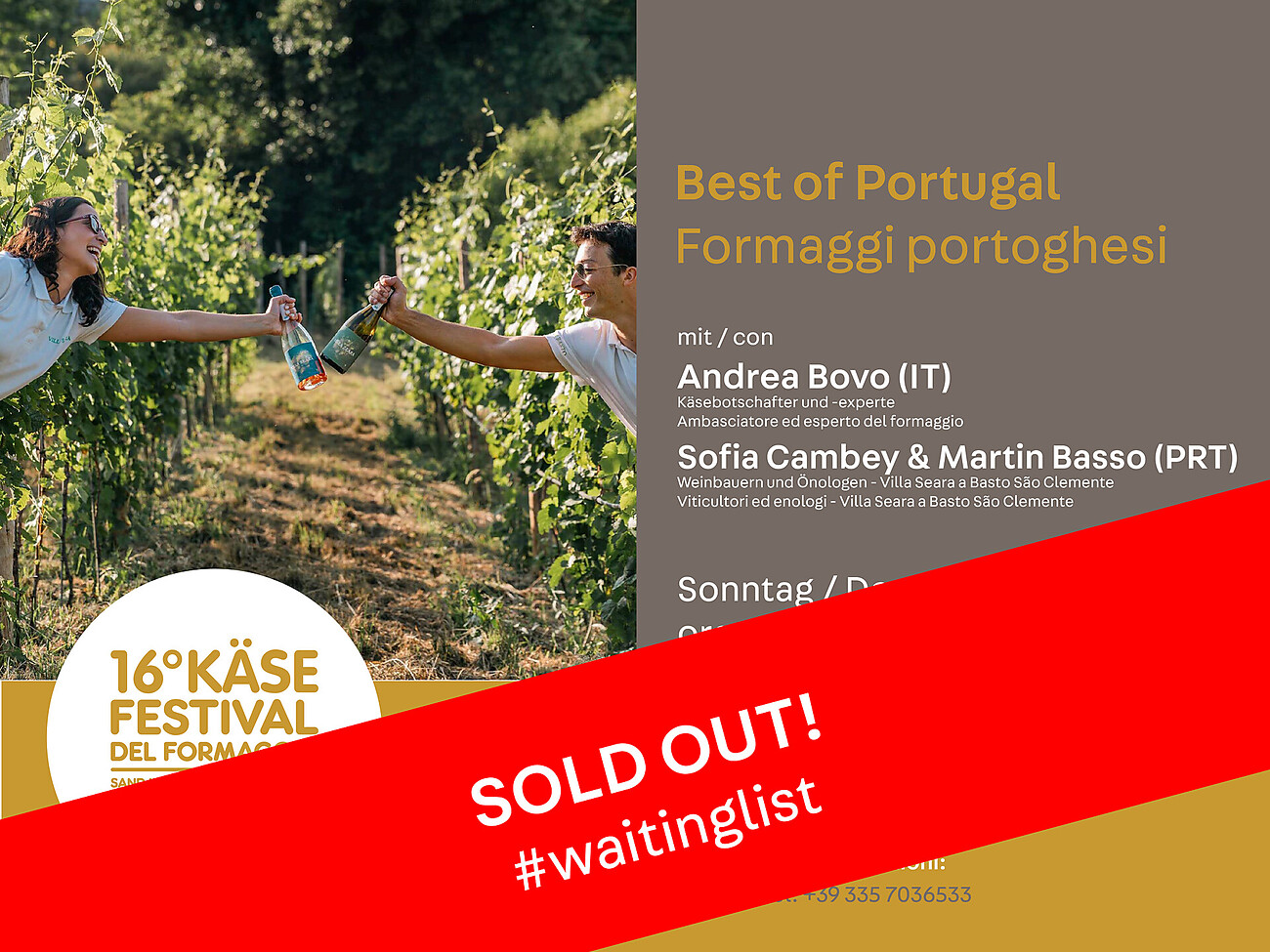 Und das sind nur ein paar der Queijo, die wir gemeinsam entdecken werden. Dazu werden wir als weiteres Highlight autochthone portugiesische Weine von Villa Seara servieren. Schon mal was von Arinto oder Avesso gehört? Sofia und Martin, die jungen Weinbauern aus Braga in der Nähe von Porto sind persönlich anwesend, um sie uns vorzustellen.