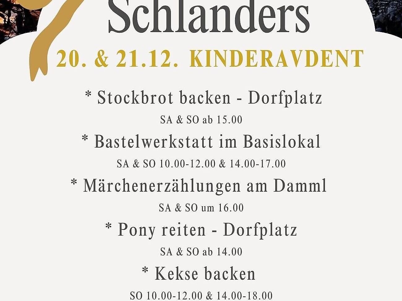 Stockbrot backen, Bastelwerkstatt im Basislokal, Märchenerzählungen am Damml, Ponyreiten und Kekse backen.