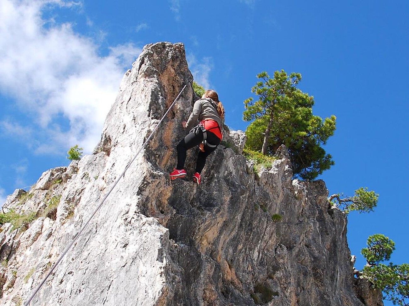 Unter fachkundiger Anleitung des Bergführers werden erste Kletter-Erfahrungen am echten Naturfels gemacht.