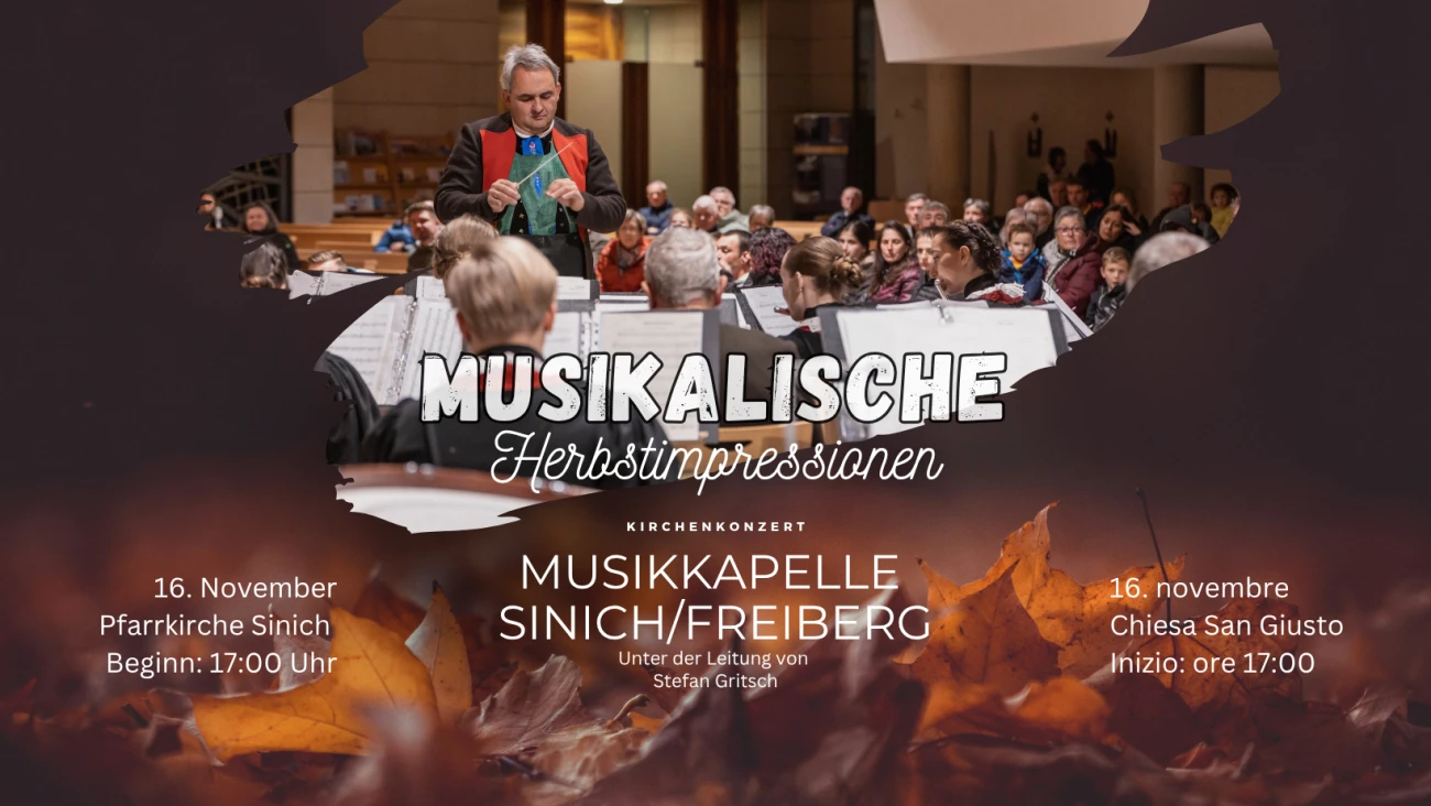 Am Sonntag, dem 16. November um 17:00 Uhr, lädt die Musikkapelle Sinich-Freiberg unter der Leitung von Stefan Gritsch zu einer musikalischen Reise in der Pfarrkirche Sinich ein. Mit einer Auswahl an verschiedenen Stücken sorgt die Kapelle für ein unterhaltsames Erlebnis, das begeistert und einen Abend voller Musik verspricht.
