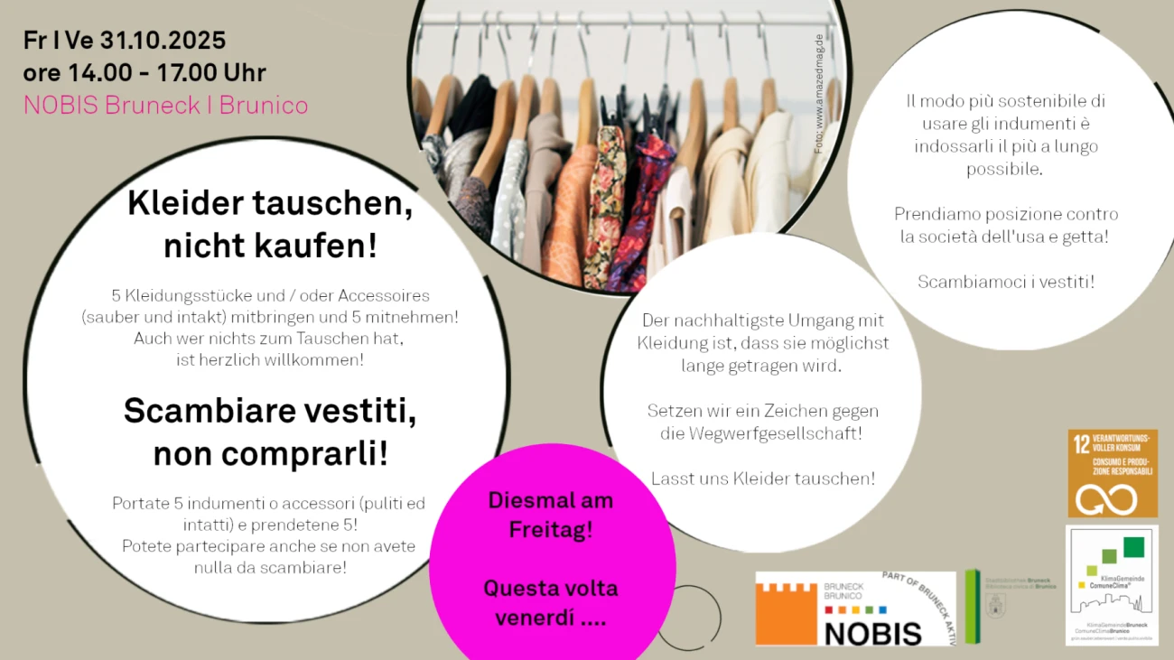 Auch wer nichts zum Tauschen hat, ist herzlich willkommen. Der nachhaltigste Umgang mit Kleidung ist, dass sie möglichst lange getragen wird. Setzen wir ein Zeichen gegen die Wegwerfgesellschaft! Lasst uns Kleidung tauschen!