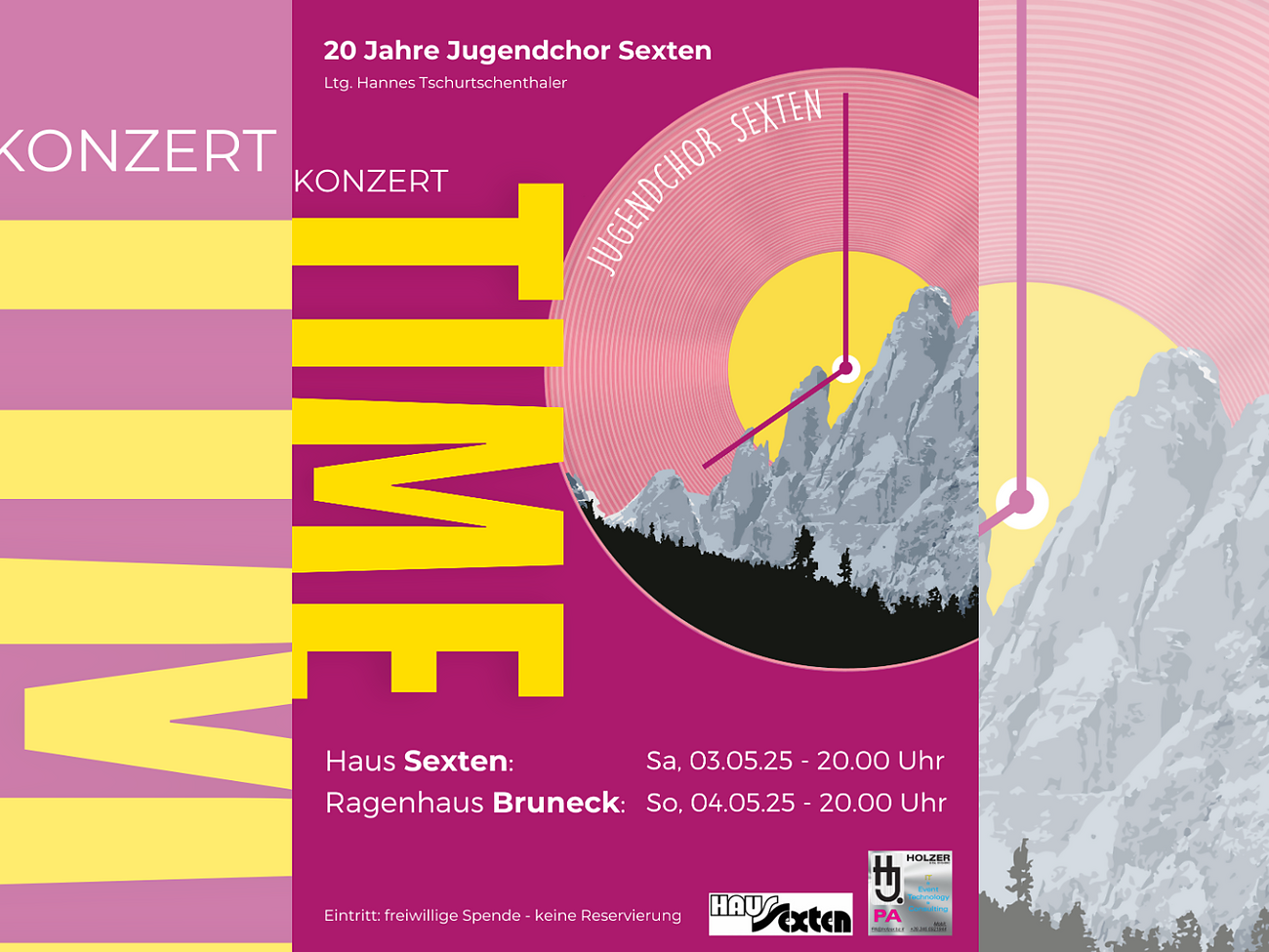 Zum 20. Jubiläumsjahr des Jugendchors Sexten findet ein Konzert mit dem Namen "Time" statt.