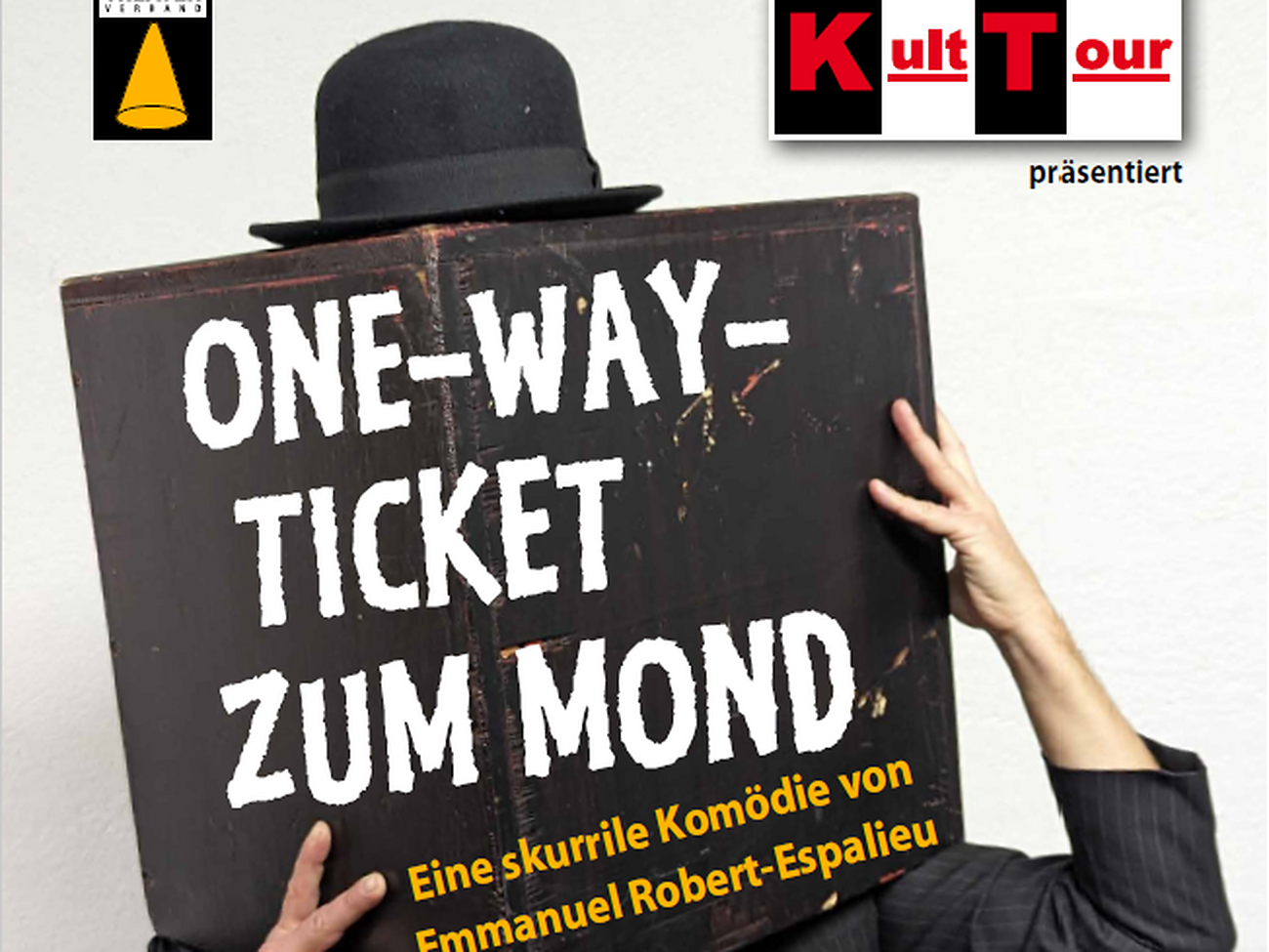 Der Theaterverein KultTour präsentiert die skurrile Komödie One-Way-Ticket zum Mond von Robert-Espalieu Emmanuel in deutscher Sprache.