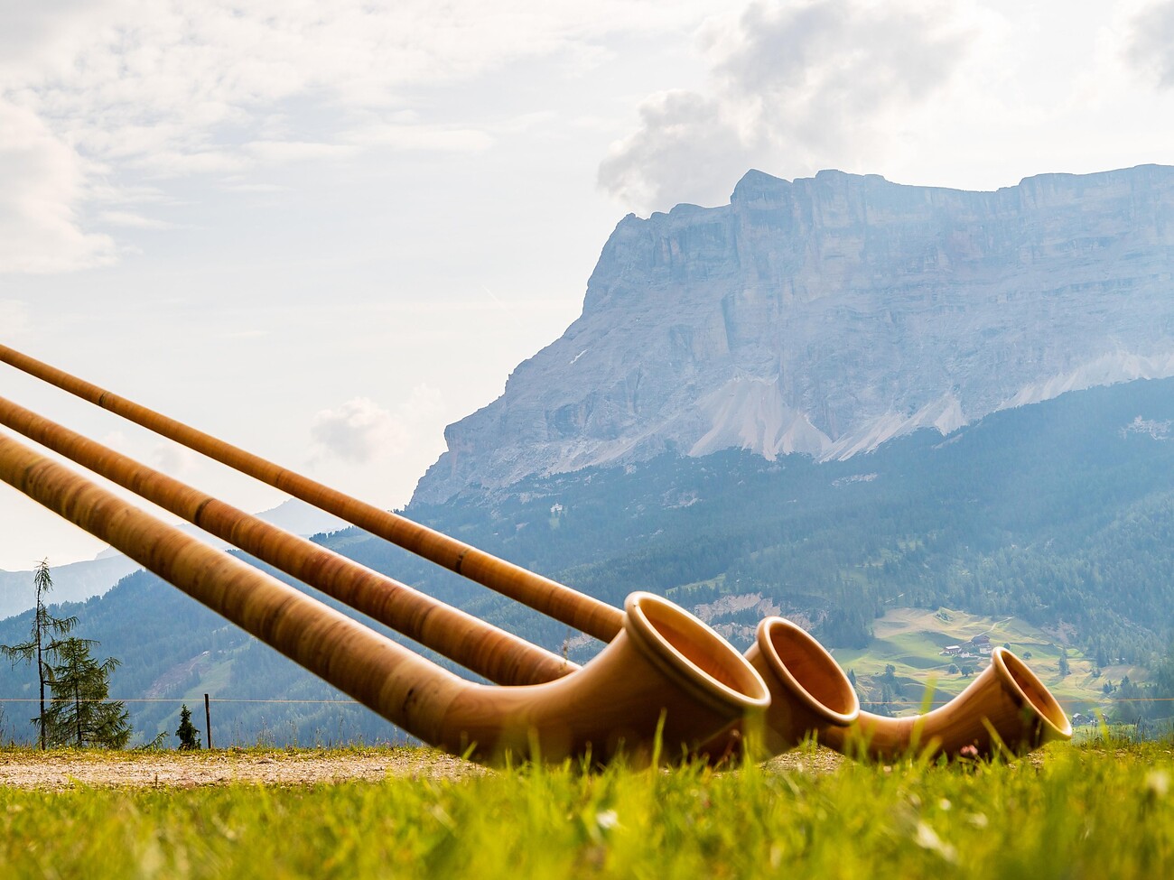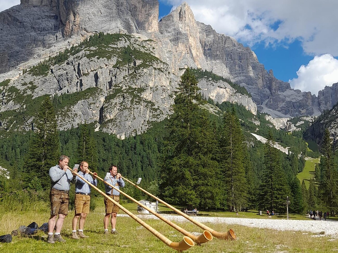 Bei der Rückkehr von den Bergen ertwartet dich ein einzigartiger Willkommensgruß mit den Klängen des Alphorntrios Cors da munt Sassongher.