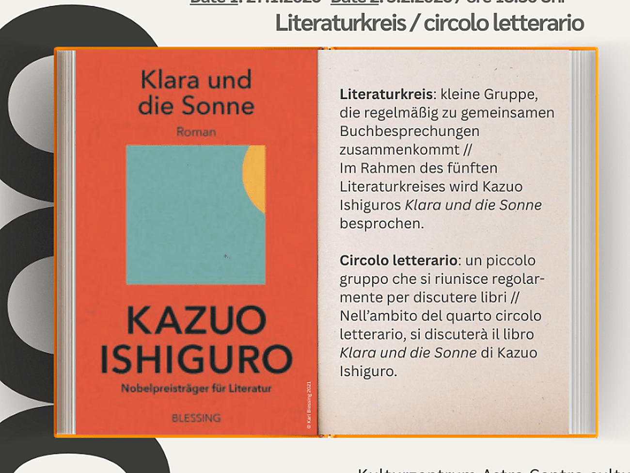 Im Rahmen des fünften Literaturkreises wird Kazuo Ishiguros Klara und die Sonne besprochen.