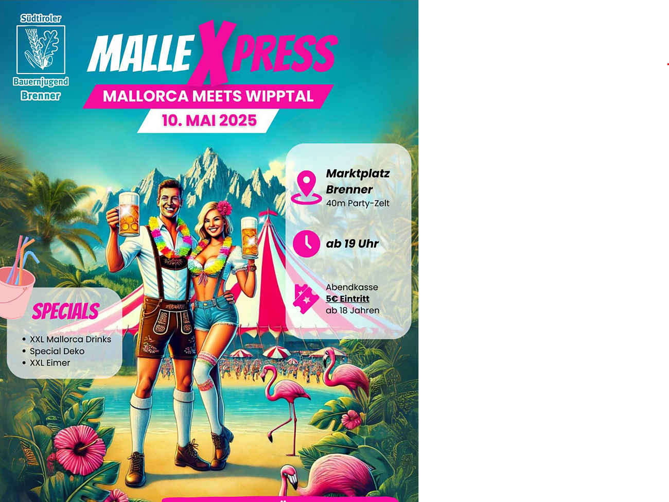 Dann komm am 10. Mai zu uns auf den Marktplatz am Brenner und feier gemeinsam im 40m Party- Zelt, als wärtst du auf der Playa!
