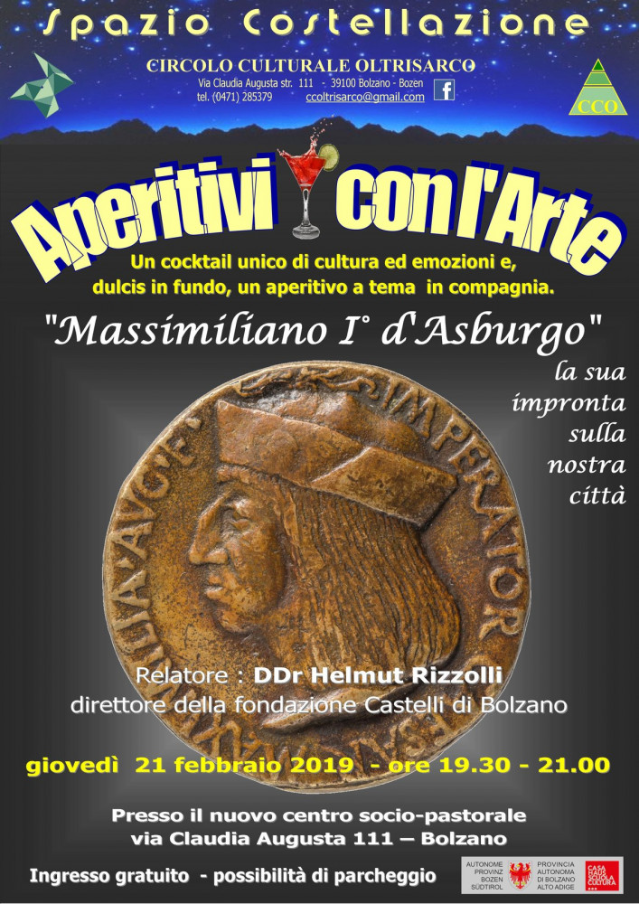 A 500 anni dalla morte del Principe e poi Imperatore Massimiliano I, con l'aiuto del DDr. Rizzolli Presidente della Fondazione Castelli di Bolzano, scopriremo l'impronta dell'Imperatore sulla nostra città.