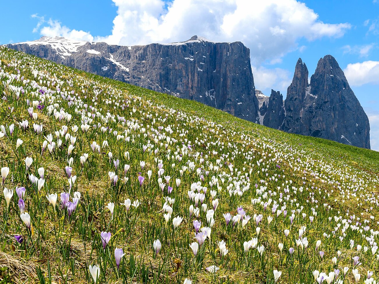 Der Rosengarten hingegen präsentiert sich wie eine scheinbar unendliche Reihenfolge von spitzen Nadeln und Türmen; zahlreiche Sagen und Legenden ranken sich um dieses Felsmassiv.