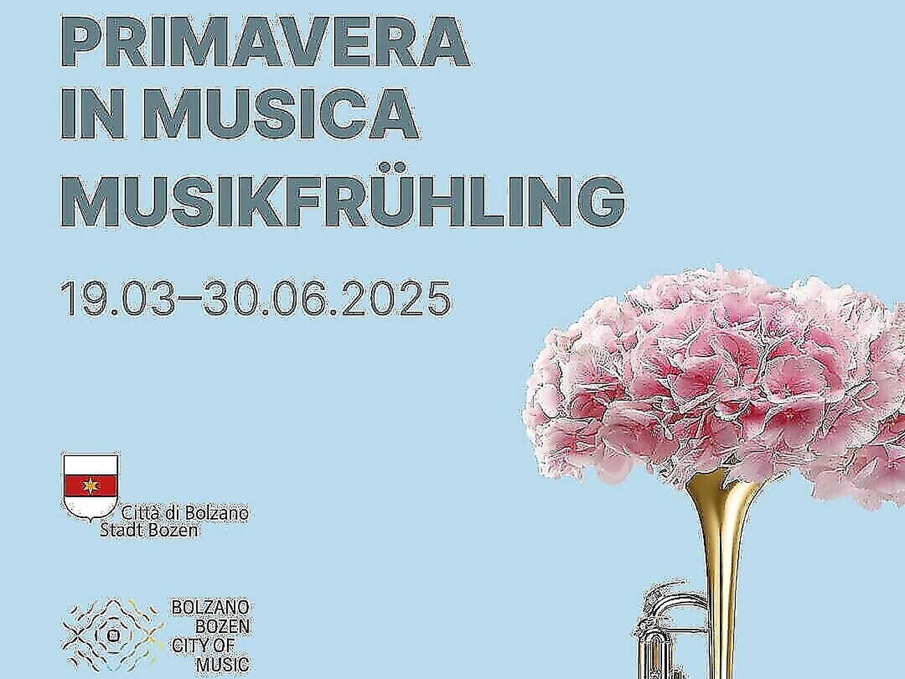 Im Rahmen von "Bozen UNESCO Creative City of Music " organisieren die Assessorate für Kultur, Jugend, Wirtschaft und Tourismus der Stadtgemeinde Bozen vom 19. März bis 30. Juni 2025 eine Reihe von Konzerten und Musikveranstaltungen unter dem Titel „Musikfrühling“.