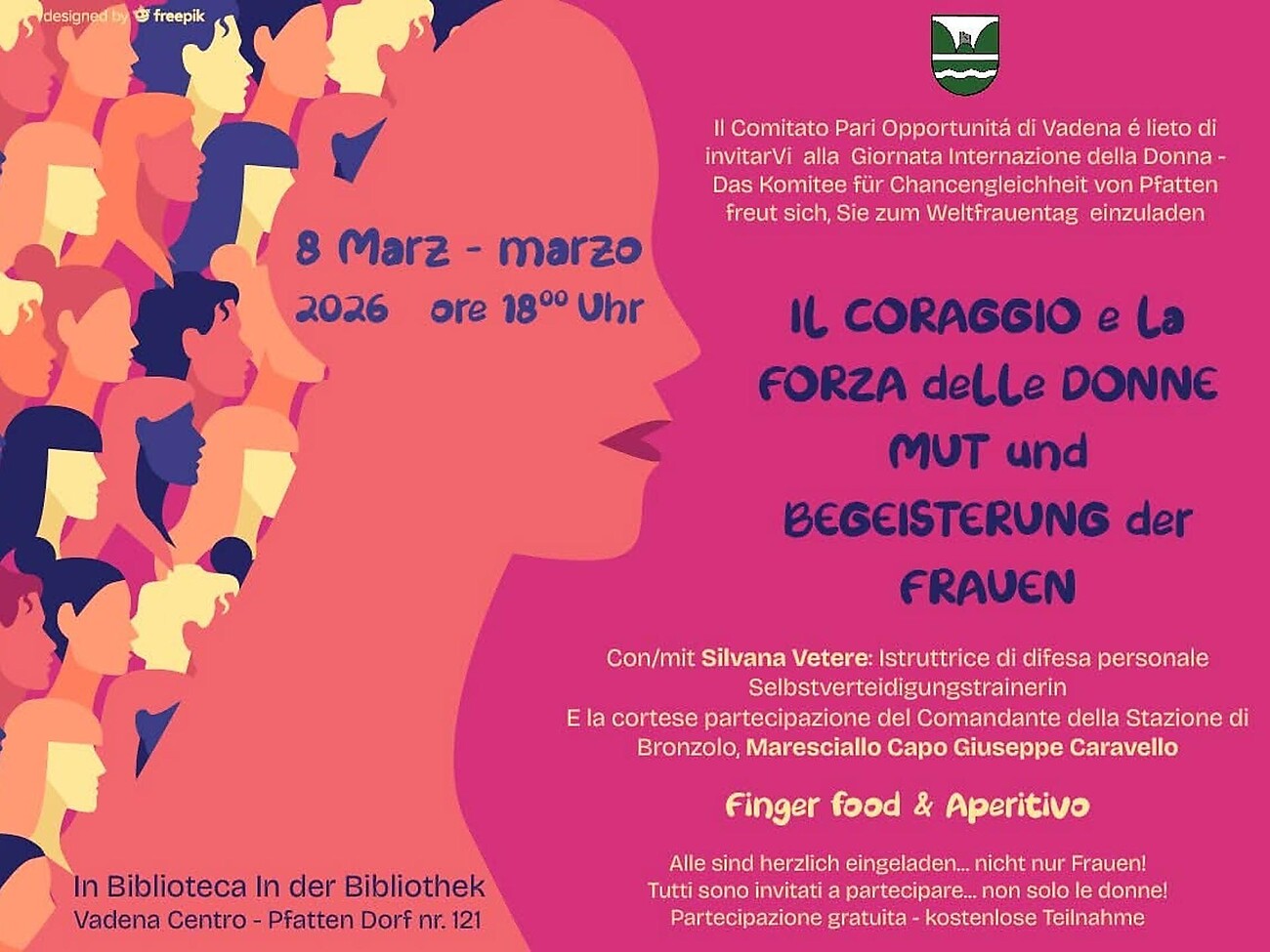 Am 8. März 2026 lädt das Komitee für Chancengleichheit Pfatten zum Internationalen Frauentag in die Gemeindebibliothek Pfatten ein.